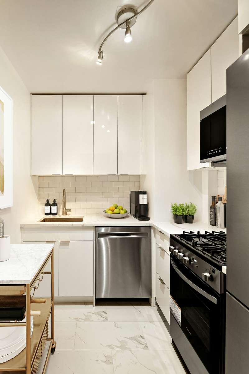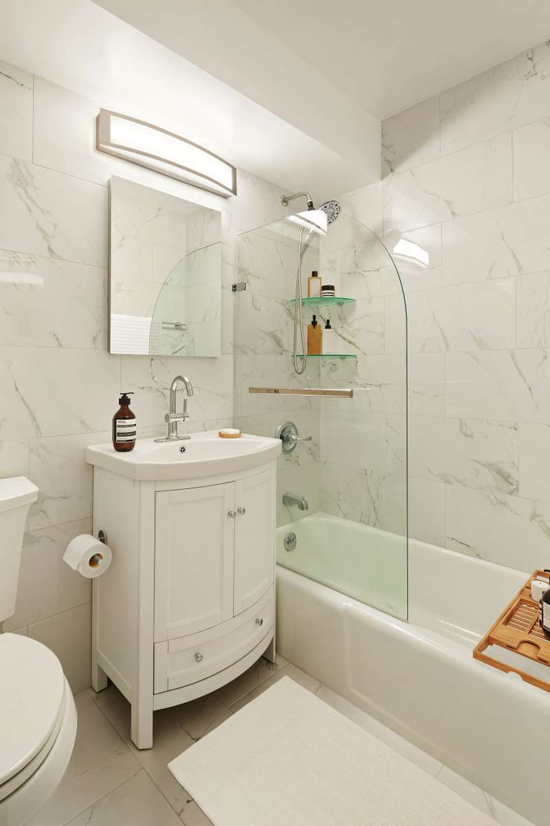 Be the first to enjoy the brand new bathroom and kitchen in this inviting home. ; With the 29' living room, there is space to lounge, dine and entertain. ; Louver doors already create a bedroom with an adjacent dressing area. ; The stylish bathroom features marble tiled walls, new vanity, and deep tub/shower combination with glass splashguard. ; The well-designed kitchen features full-size Frigidaire appliances, sleek white cabinets, and subway tile backsplash. ; To complete the transformation, the wood floors have just been sanded/stained and the apartment has been completely painted. ; No "cookie-cutter studio", this is a chic, "almost one bedroom". ; ;