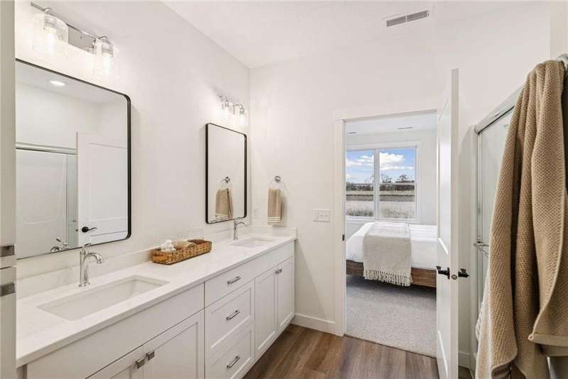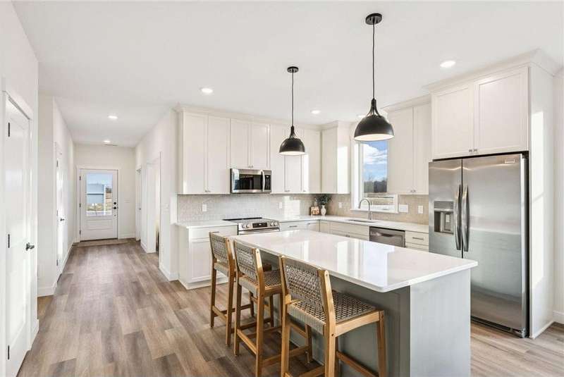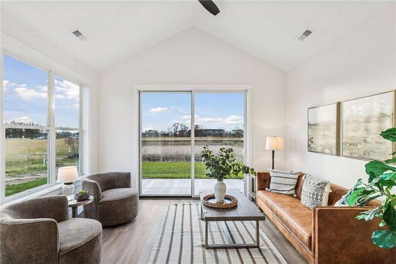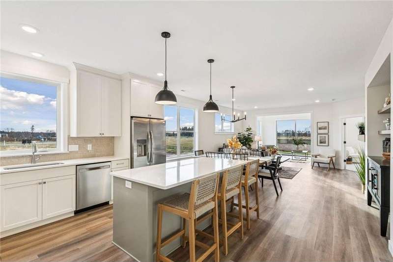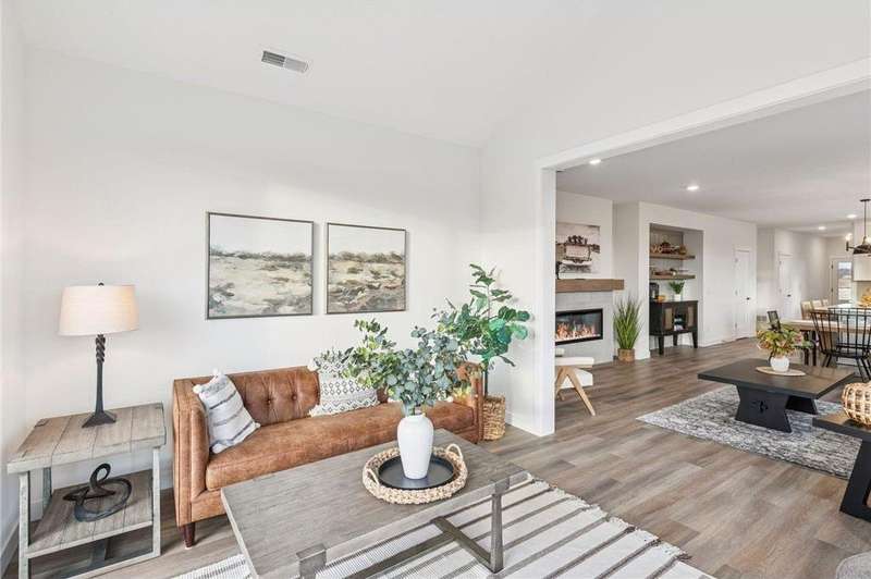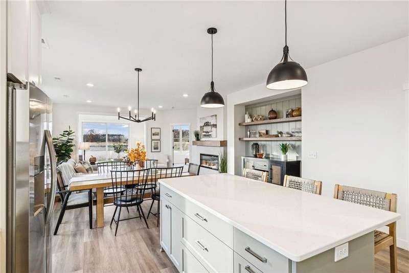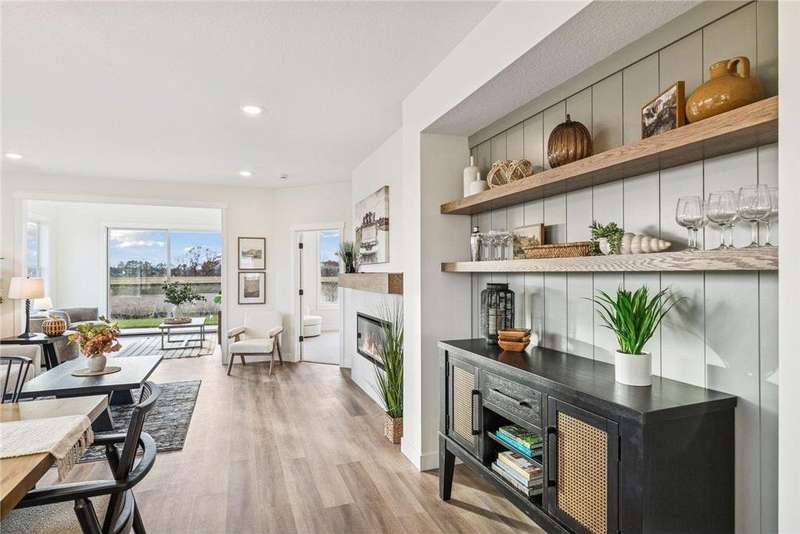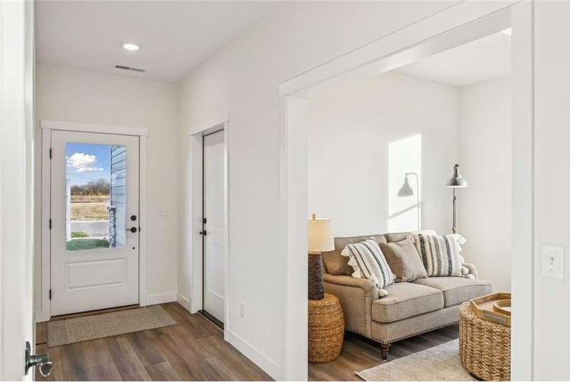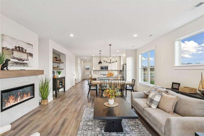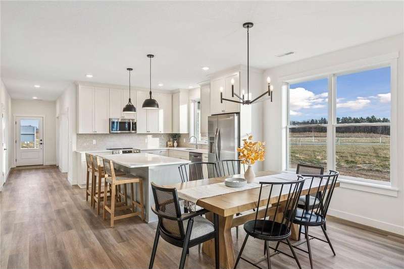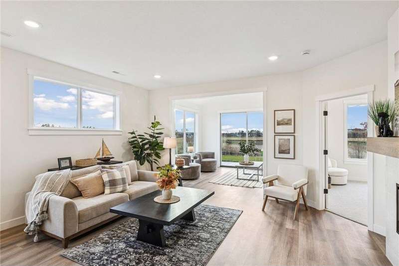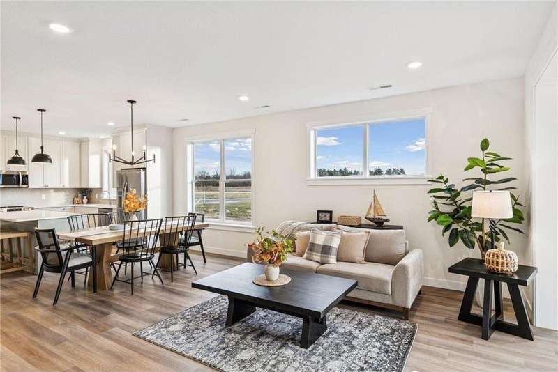 Welcome to the NEW Francois Fields community in New Richmond, where low-maintenance living meets elevated design. This custom-built Derrick 2BD/2BA twin home showcases the exceptional craftsmanship and thoughtful finishes you expect from one of the area’s premier builders. Featuring the brand-new St. Johns slab-on-grade floor plan, this home delivers modern comfort and timeless style. A light-filled open-concept living room, anchored by an elegant Allusion electric fireplace is ideal for relaxing or entertaining. The custom enameled kitchen cabinets reach to the ceiling and are complemented by quartz countertops, a tile backsplash, under-cabinet lighting, and soft-close drawers. Stainless steel appliances and a spacious island make this kitchen both functional and beautiful. Enjoy natural light year-round in the bright and airy sunroom, perfect for morning coffee or quiet reading. The primary suite offers a private retreat with a dual-sink vanity, walk-in shower, and large walk-in closet. A flexible front room serves perfectly as a home office or sitting room, while the second bedroom, full guest bath, and laundry room complete the home. The attached two-car garage provides ample storage. With association-maintained lawn care and snow removal, you’ll spend less time on chores and more time enjoying life. See supplements for photos, tour, and more. Schedule your private tour today and experience easy, refined living in Francois Fields.