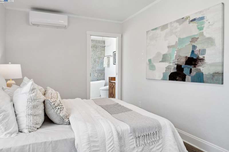 This stunning property in Toler Heights offers a unique living experience: a main 2BR/2BA home & a detached, permitted 1BR/1BA ADU w/a separate entrance. The main home, a thoughtfully upgraded retreat, features 2bed/2ba with an open floor plan. Beautiful kitchen w/a gas range & ample storage. The primary suite has been transformed into a spa-like escape, complete w/a large soaking tub & a TOTO bidet for true luxury experience. Step outside from the main home to a private deck, perfect for relaxing or entertaining. The ADU features a tall, airy ceiling with a loft, a full kitchen, a bedroom & a bathroom—providing a perfect space for guests, family, or potential rental income. The entire property is a private oasis. The beautiful courtyard patio, planter boxes & various fruit trees (Asian pear, apple, fig & passion fruits) w/hanging string lights create an inviting ambiance. 1-car garage w/driveway, laundry & additional storage in basement. Cool/Heat systems throughout for added comfort. Conveniently located near schools (Bishop O’Dowd HS & Barack Obama Academy), King Estate Park & Oakland Zoo. Enjoy easy access to the 580 freeway, BART, local groceries, downtown San Leandro, Lincoln Square Shopping Center & Montclair Village.