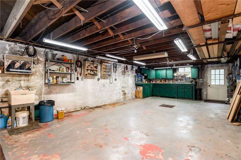 Must see this brick raised ranch on 5 1/4 acres in Knoch School District .0n the main floor are four BRs ,home office w/access to outside steps, extra large kitchen/ dining area with plenty of wood cabinets and lots of room to entertain. The lge LR has plenty of space to relax and has a front door that opens to a future porch that has a great view. The laundry area leads to back yard. The Walk-up attic is 6-8Ft height and possibility of many uses. Basement has a Family Room with a stone fireplace, a Furnace Room with lots of storage. The Double garage has 2 work areas to handle any hobby. Attached Drive thru Garage has 2 brand new garage doors. The 5 acres is zoned to allow up to 5 horses. A gravel drive goes up beside home to back of property with a cement pad that could be used for picnic ,shed or barn. Furnace is 5 yr old, Hot Water Tank is brand new, Roof is 2 yr. old. The owners wanted privacy so there are lots of trees and bushes on sides and front of property.
