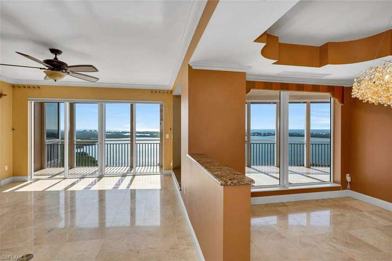 Step into luxury with one of the largest typical floor plans available in the prestigious Estancia high rise. This spacious residence on the 20th floor offers breathtaking, uninterrupted views of the Gulf of Mexico and the Bonita Bay golf courses. With its east/west orientation, you'll enjoy spectacular sunrises and sunsets right from your home. This elegant 3 Bed/3 Bath residence boasts expansive terraces and well-designed features that embody the casual yet sophisticated lifestyle of Southwest Florida. For wine enthusiasts, there's a custom-designed wine storage and serving area. Aspiring chefs will love the spacious, centrally located kitchen with stunning views in both directions. Estancia provides unparalleled amenities including a live-in building manager, two guest suites, a fitness center, a massage room, club and card rooms, a large pool and spa, and two gas grills. Bonita Bay extends your luxury living with five golf courses, an 18-court tennis center, an 18,000 sq. ft. fitness center, an 8,000 sq. ft. lifestyle spa & salon, a full-service marina, a Gulf front beach park, six restaurants, 10 pickleball courts, croquet, bocce ball, canoeing, a life enrichment center, three parks, and more.