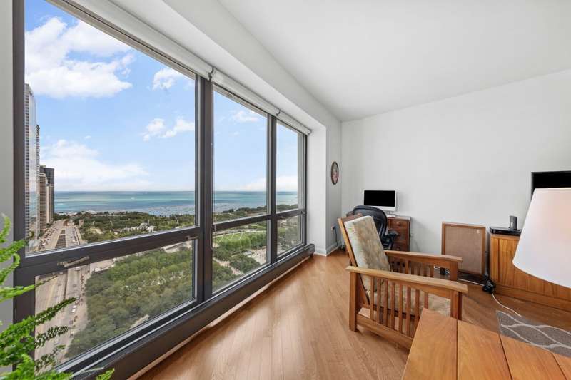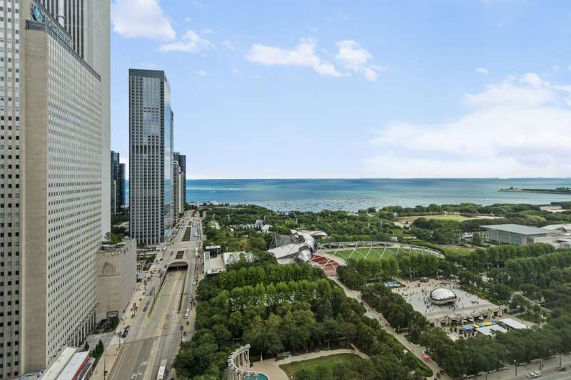 Don't miss this spacious 3-bedroom, 2.5-bath condo on the 30th floor of one of the Chicago Loop's most luxurious buildings! Floor-to-ceiling windows flood the home with eastern light and showcase sweeping views of Lake Michigan, Millennium Park, and Grant Park. The expansive living/dining room features hardwood floors and easily accommodates both a sectional sofa and full dining table. Step out to the private balcony-perfect for grilling or enjoying the sunrise over the lake. The kitchen boasts brand-new stainless steel appliances, abundant cabinetry, and granite countertops. The primary suite (currently used as a den) offers a professionally organized walk-in closet and a spa-style bath with whirlpool tub, separate shower, and dual vanity. Two additional bedrooms share a spacious second bath, plus there's a modern powder room for guests. A full-size, in-unit washer and dryer add everyday convenience. Heated indoor parking space (#710) is included. The Heritage is a full amenity building offering 24 hour door staff, on-site management, indoor pool, steam, sauna and hot tub, fitness room, party-conference room, 3 outdoor terraces, storage locker, bike storage, dog run and direct access to the Pedway.