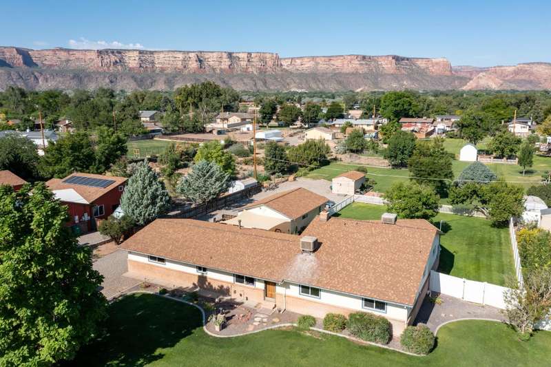 Sprawling Redlands rancher on nearly 1 irrigated acre with Colorado National Monument views. The updated custom kitchen opens to a living space and is complete with granite, a large working island and a walk in pantry. The owner's suite has outdoor access two additional spaces for your creative use (office, sitting area, or exercise?) as well as a spacious en suite bath and dual closets. Plenty of room for RV parking, a detached 3 car garage, a 12x20 storage shed and a 50x50 garden area. The roof is only 2 years old and holds 2 Breezair cooling units. There is plenty of room for additional shops, or an ADU.