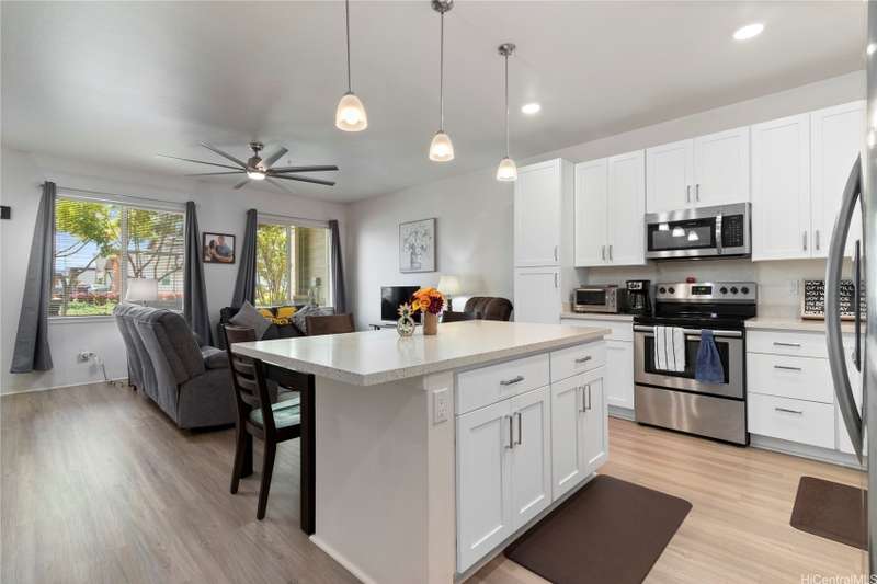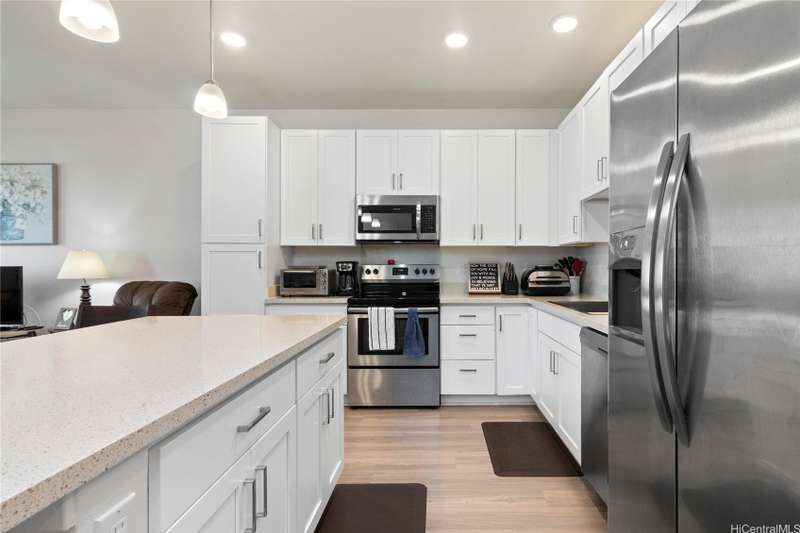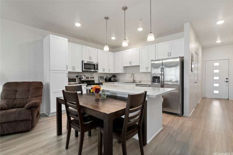 Welcome Home to Ilima at Ho'opili, a spacious 3 bed 2.5 bath split-level townhome built in 2019! Some of the many features of this home are an attached garage, fenced private front yard, open concept kitchen with stainless appliances and quartz countertops, split AC for comfort, and a spacious lanai off the primary bedroom. Conveniently located near the rail station, Kroc center, freeway access, restaurants and shopping, golf courses and more. Enjoy your downtime at the community pool, or one of the many well-equipped newly built parks.
