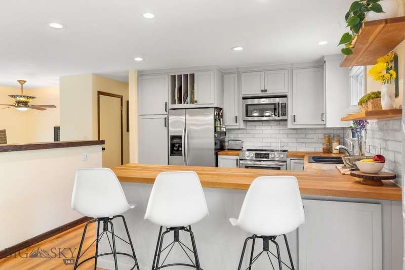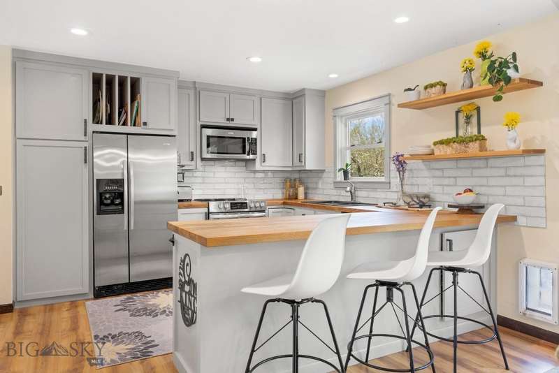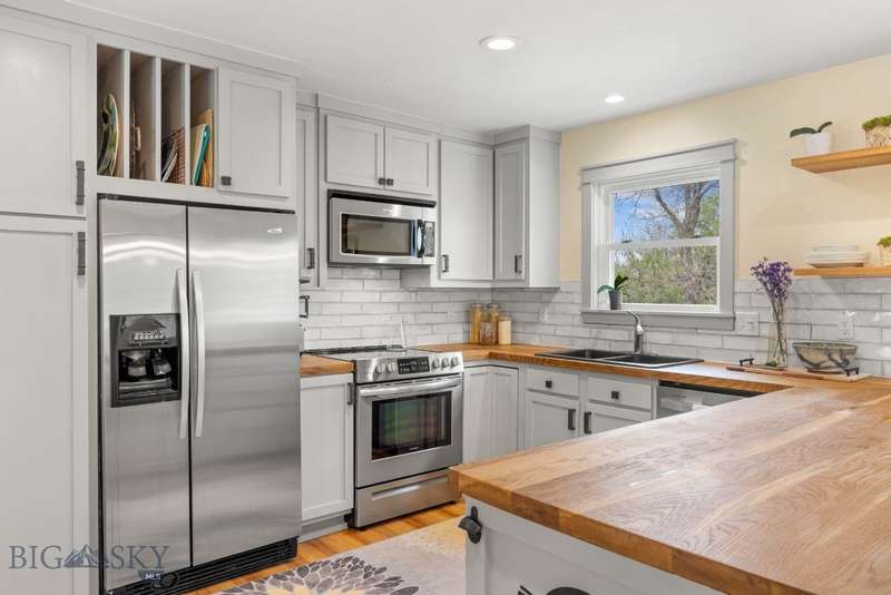Classic South Bozeman Living in the Heart of the Family-Friendly Figgins Neighborhood! Located just steps from top-rated Morning Star Elementary and Sacajawea Middle Schools, and easy walking distance to Montana State University, Bobcat Stadium, the Museum of the Rockies, and Main Street to the Mountains trail access, this location offers an unbeatable Bozeman Local lifestyle. Welcome to this beautifully updated 4-bedroom, 3-bathroom home nestled in the desirable Figgins Subdivision-a true classic Bozeman home combining comfort, convenience, and space in one perfect package. Step inside to discover a new, modern custom kitchen featuring butcher block countertops, contemporary finishes, and ample cabinetry-ideal for home chefs and entertainers alike. The open-concept layout flows into light-filled living and dining and living spaces, creating a warm and welcoming atmosphere throughout. One of the home's standout features is its uncommonly large backyard, a rare find in this area. Backing directly up to a peaceful community park, the yard offers privacy, room to play or garden, and a seamless connection to nature-perfect for families, pets, and outdoor gatherings. Enjoy the mature landscaping from the welcoming back deck, that adds shade and charm, making this space feel like your own private retreat. The garage has been thoughtfully converted into a recreation room, providing extra living space for hobbies, a home gym, or a playroom-but can easily be converted back to a garage if desired. Whether you're looking for top-rated schools, walkability, or outdoor adventure, it's all right here. Located just minutes from downtown Bozeman, this home well cared for home is set in a friendly, established neighborhood.- with NO HOA! This home offers the space, setting, and updates today's buyers are looking for. Don't miss your chance to own a slice of Bozeman in one of its most sought-after neighborhoods! Schedule your private viewing today!