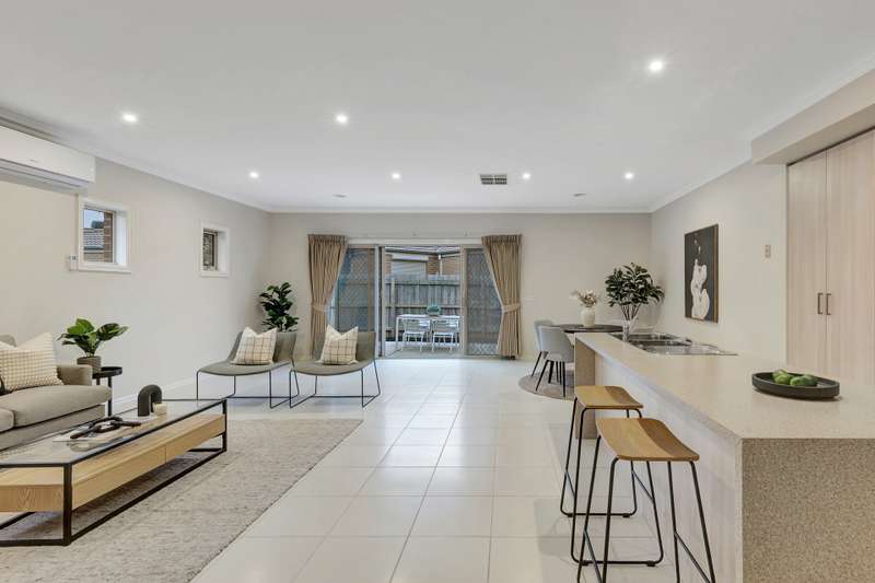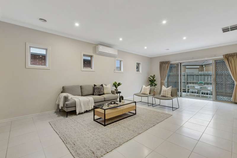 Welcome to 36 Bronson Circuit - a home designed for those who value comfort, style, and convenience. Perfectly positioned in one of Hoppers Crossing’s most sought-after pockets, this three-bedroom, two-bathroom residence is the ideal blend of modern living and low-maintenance appeal. From the moment you step inside, you’re greeted by a light-filled, open-plan design that instantly feels welcoming. The spacious living and meals zone flows seamlessly into the contemporary kitchen, where quality appliances, ample bench space, and clever storage make cooking and entertaining a pleasure. Large windows allow natural light to pour in, creating a bright and airy atmosphere throughout the heart of the home. Each of the three bedrooms are generously sized, offering built in storage and plenty of room for the whole family. The master suite includes its own private ensuite, while the additional central bathroom is stylishly appointed, making mornings easy and stress free. The rear yard has been thoughtfully designed for low maintenance living, giving you just enough space to enjoy the outdoors without spending your weekends on upkeep. Whether it’s a quiet coffee in the sunshine or a casual summer barbecue, this private outdoor space is the perfect extension of the home. Adding to the appeal is a secure single-car garage, providing both storage and peace of mind. Location is everything, and 36 Bronson Circuit delivers. Just 500m (approx.) from Hogans Corner Shopping Centre and 900m (approx.) to Baden Powell College - Derrimut Campus, daily errands and school runs are a breeze. A short drive will take you to Pacific Werribee for retail therapy, dining, and entertainment, or to Hoppers Crossing Station for an easy commute and much more! This is the perfect property for first-home buyers, downsizers, or investors seeking a stylish, low-maintenance home in a thriving location. Give us a call today to make this your next dream home!