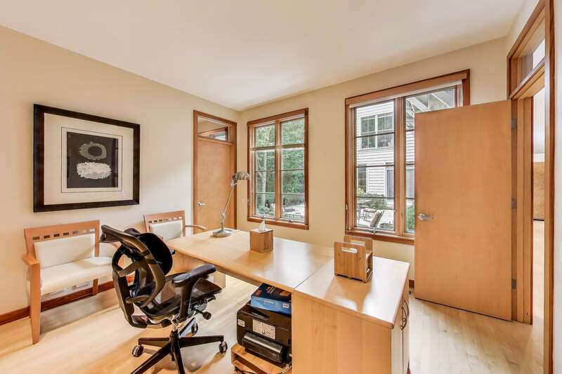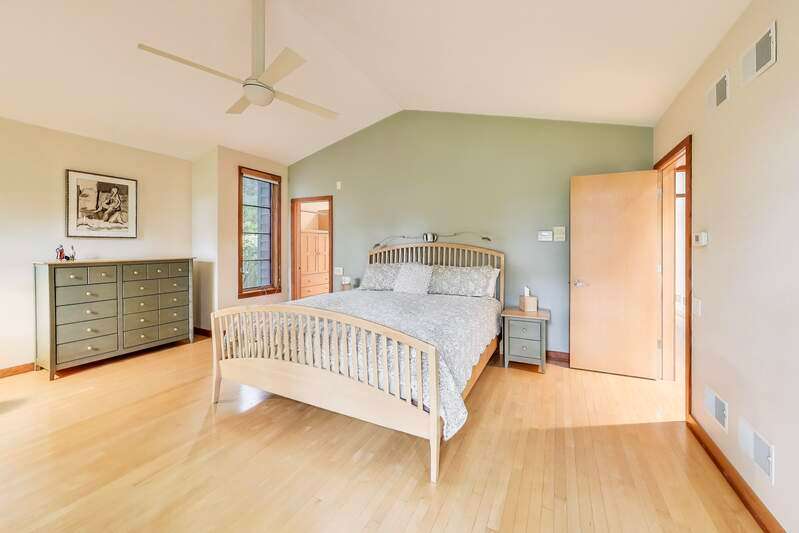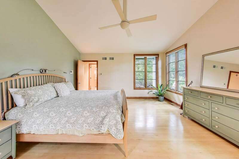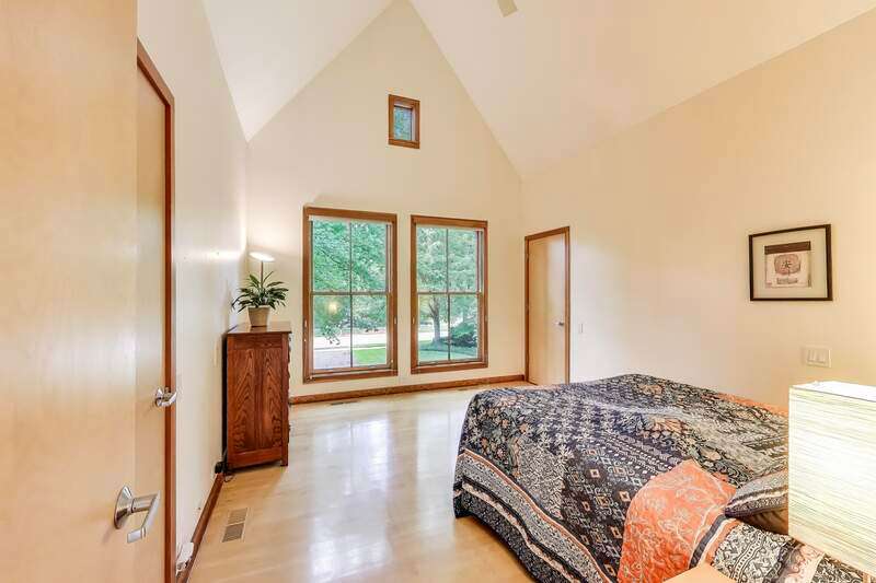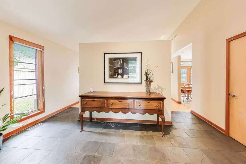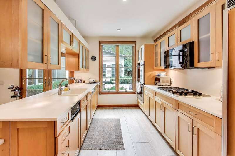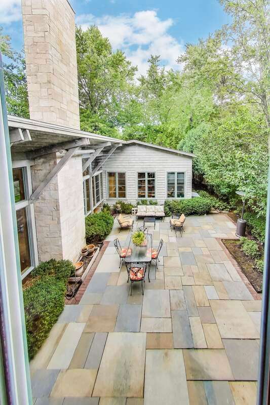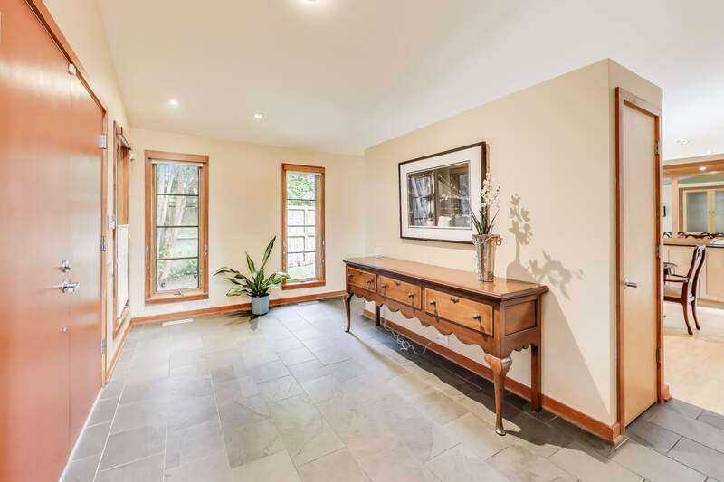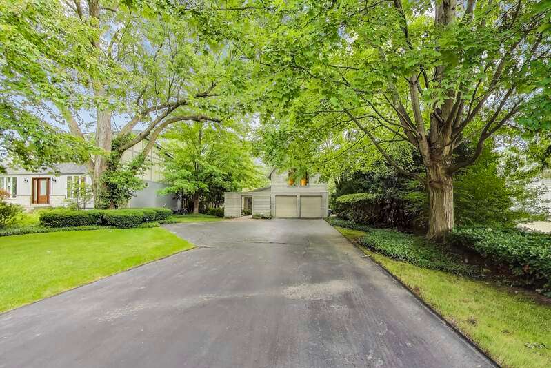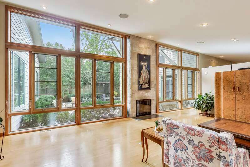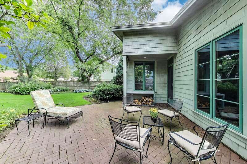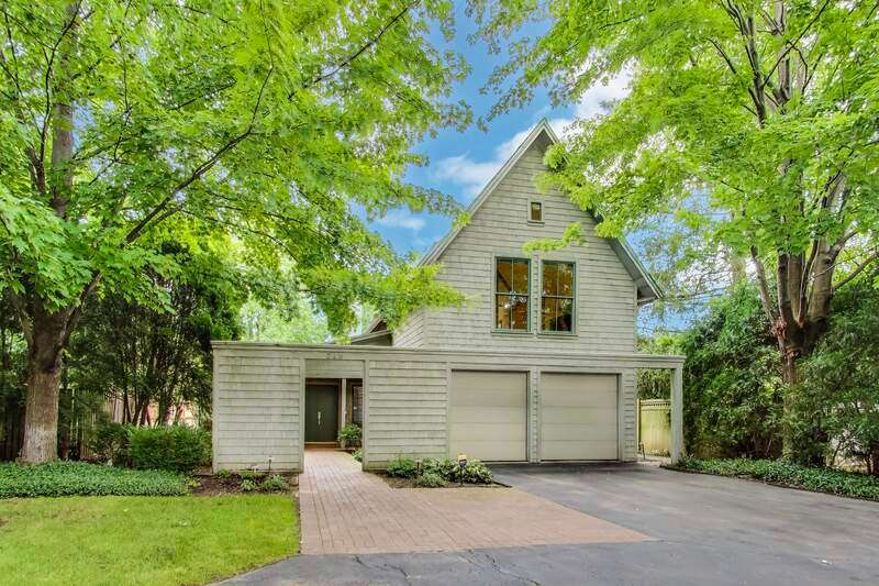 Architectural Elegance Meets Natural Serenity - Nestled on a lush 60' x 303' lot in a prime Deerfield location, this custom home lives like a ranch style home offers privacy, character, and sun-filled design. Built in 1999, it features a central courtyard that floods the interior with light, a soaring ceilings, floating walls, hardwood floors, skylights and a chef's kitchen with premium appliances. The tranquil main floor primary suite includes dual walk-in closets, a spa-like bath, and private office, while two upstairs bedroom suites offer scenic views. A gigantic, finished lower level with media, fitness rooms, full bath, storage and expansive backyard complete this secluded sanctuary-just steps from the elementary school. Very versatile floor plan. Prime coveted location half block to elementary school.