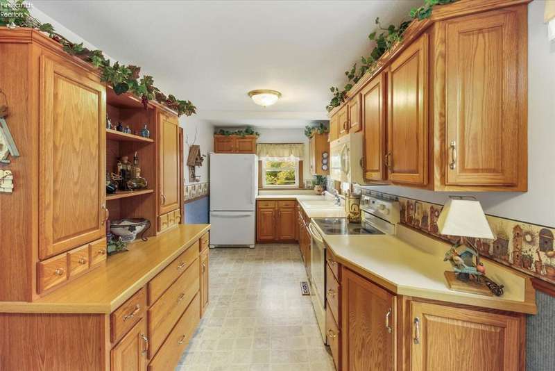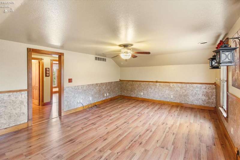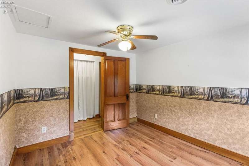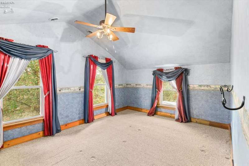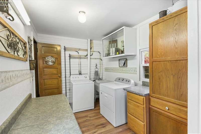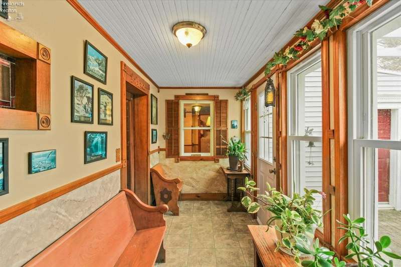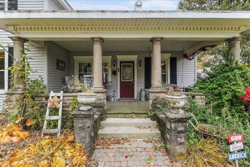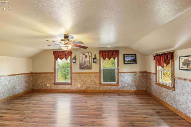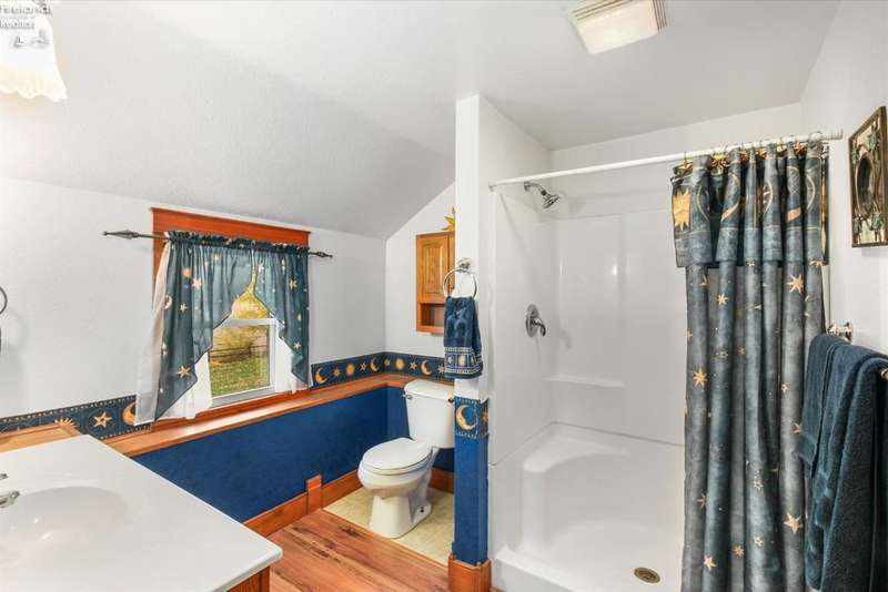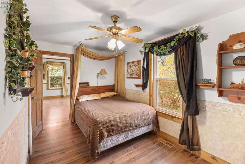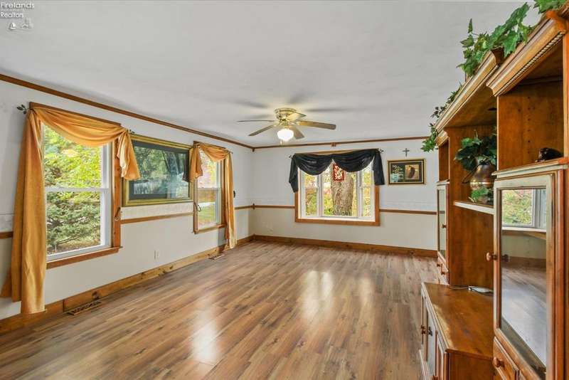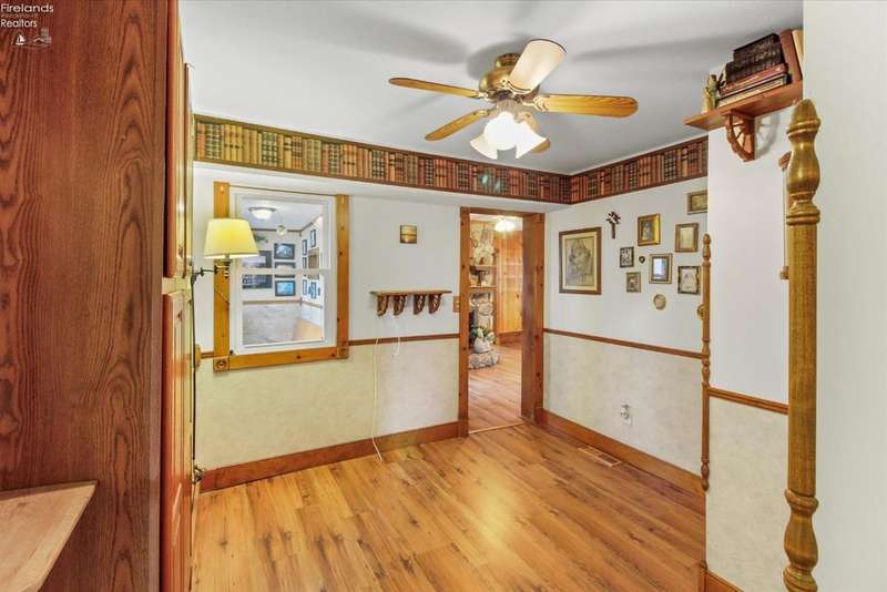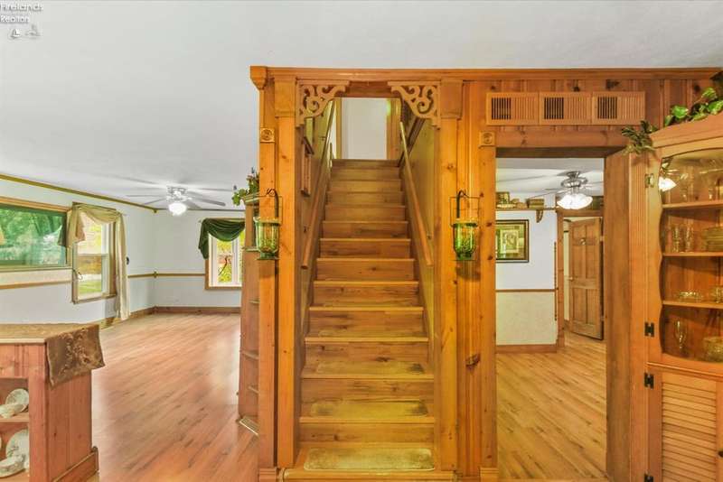 Discover your dream farmhouse in a picturesque setting! This charming 4-5 bedroom, 2 bath home boasts over 2300 sqft of living space nestled on 3.5 acres adorned with beautiful mature trees. Enjoy your morning coffee on the inviting front porch or whip up family meals in the eat-in kitchen equipped with appliances. The formal dining area features a cozy stone fireplace, perfect for gatherings. With a first-floor bedroom, laundry room, and a dedicated office space, this home is designed for convenience. The master bedroom impresses with its vaulted ceiling, while the rear patio and fenced yard offer a serene outdoor retreat. Plus, a spacious 36x56 wood barn adds to the property's charm.