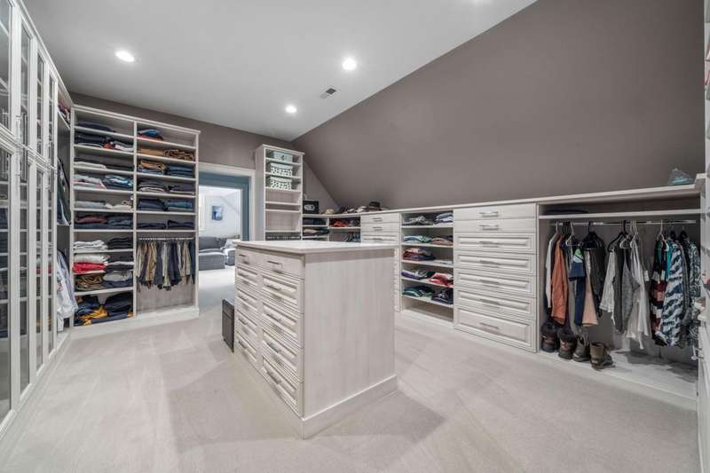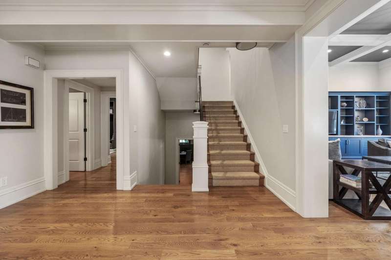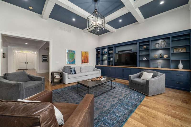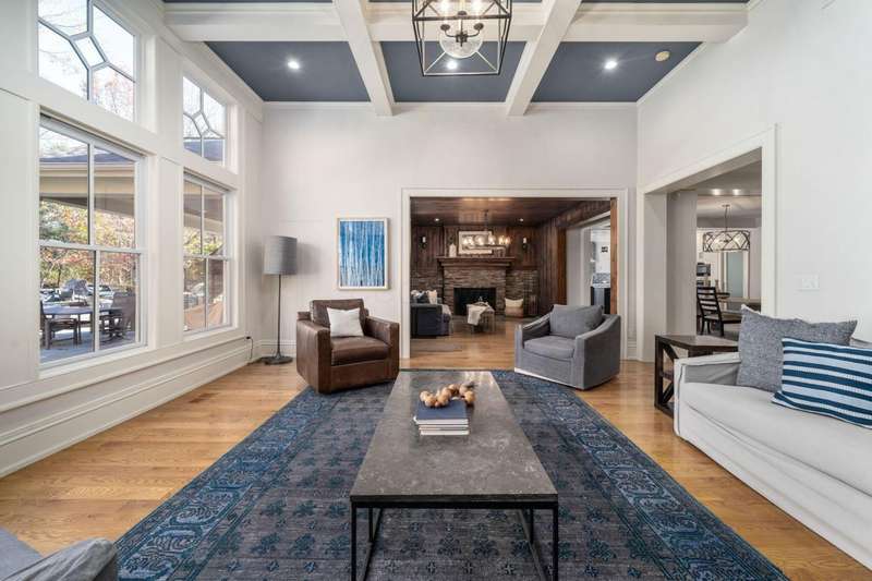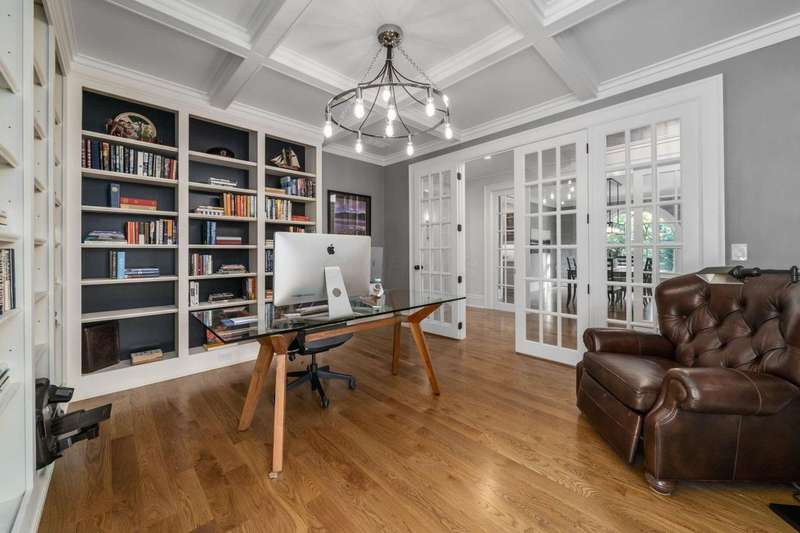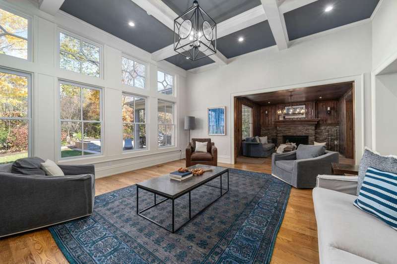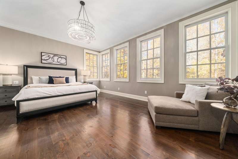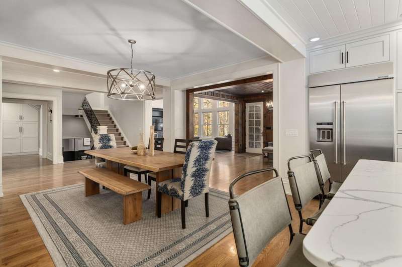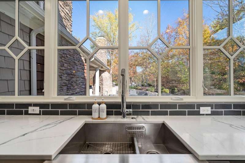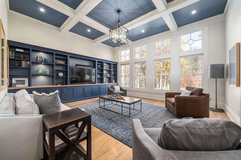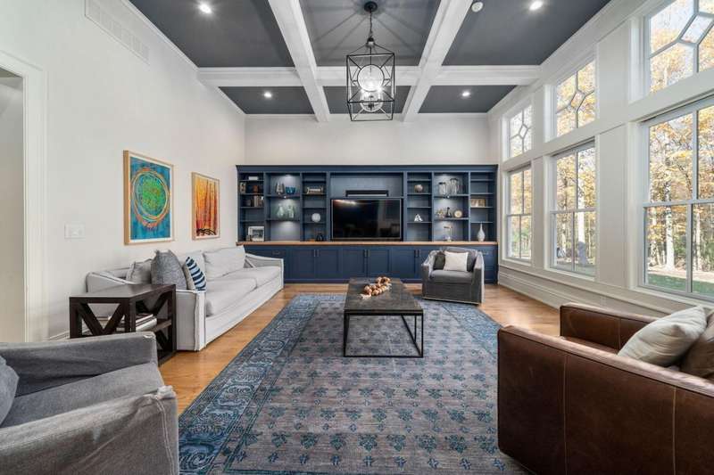 Experience true luxury living in this stunning New England-inspired shingle-style estate, nestled on nearly one private acre backing to woods in the prestigious Tartan West community. This home blends timeless architecture with exquisite modern design. Entire first floor is 4 1/4 inch solid white oak hardwood floor. Magazine-worthy chef's kitchen features dual oversized quartz islands, custom cabinetry, fireclay tile backsplash, built-in refrigerator/freezer, two dishwashers, 48'' Wolf gas range with double ovens, wall oven with microwave, and a dedicated coffee station with water line. A spacious pantry and butler's pantry with wine refrigerator complete this extraordinary space. The two-story great room impresses with a coffered ceiling, custom built-ins, and a dramatic wall of windows overlooking the serene backyard. Enjoy the hearth room with wood-burning fireplace, elegant dining room with designer wallpaper, and private office with built-ins, coffered ceiling, and French doors to the back staircase.Retreat to the luxurious primary suite on the mezzanine level featuring a private sitting room/office, spa-like bath with programmable digital shower, soaking tub, and an expansive walk-in closet. Three additional bedrooms and two full baths are located one level above, along with a designer laundry room. The lower levels include a family/media/game room with wet bar, dishwasher, and refrigeration drawers, plus a guest suite with full bath and ample storage space currently set up as a home gym. Outdoor living is equally impressive???featuring a covered patio with fireplace, hot tub, fire pit area, and built-in grill with soapstone countertops. Additional highlights include a 3-car side-load garage with 3 - 220V EV charging stations, custom drop zone, newer roof, dual HVAC systems, tankless water heater, and Halo 5 water filtration system, automated lighting. Every detail reflects comfort and impeccable craftsmanship. Imported Sq Ft is incorrect. 6725 ATFLS.