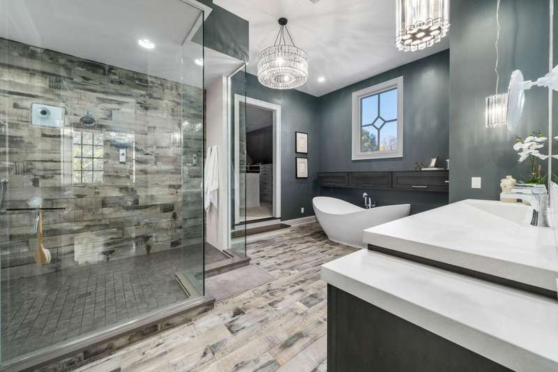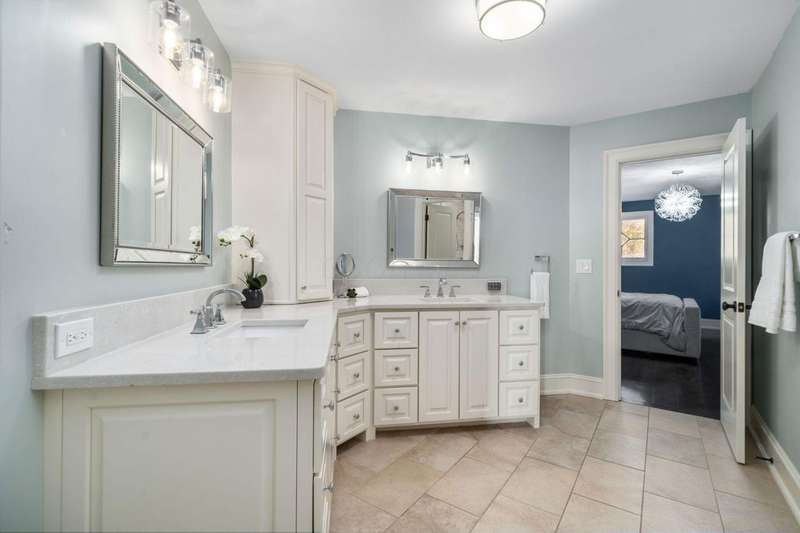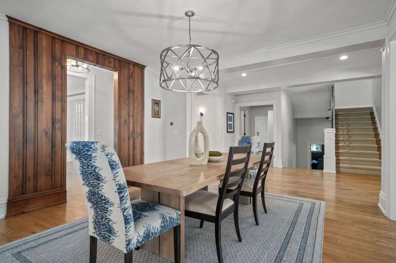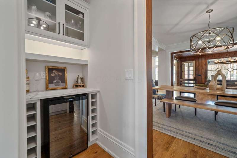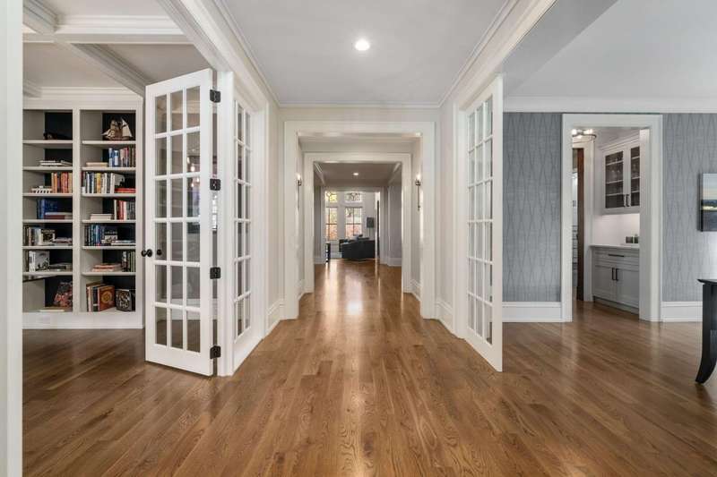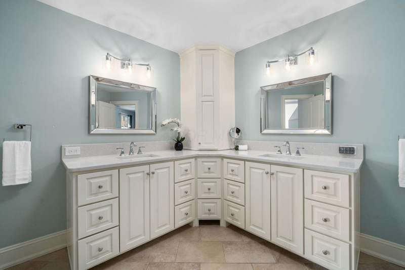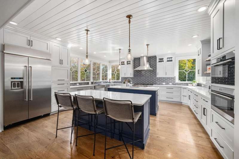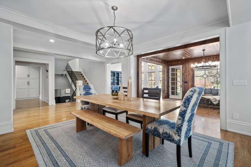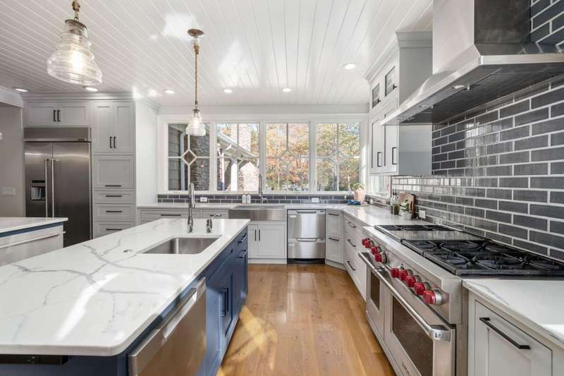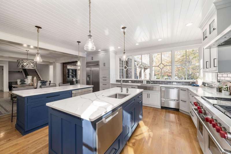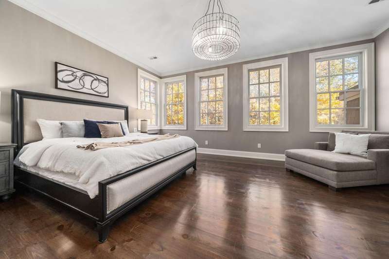 Experience true luxury living in this stunning New England-inspired shingle-style estate, nestled on nearly one private acre backing to woods in the prestigious Tartan West community. This home blends timeless architecture with exquisite modern design. Entire first floor is 4 1/4 inch solid white oak hardwood floor. Magazine-worthy chef's kitchen features dual oversized quartz islands, custom cabinetry, fireclay tile backsplash, built-in refrigerator/freezer, two dishwashers, 48'' Wolf gas range with double ovens, wall oven with microwave, and a dedicated coffee station with water line. A spacious pantry and butler's pantry with wine refrigerator complete this extraordinary space. The two-story great room impresses with a coffered ceiling, custom built-ins, and a dramatic wall of windows overlooking the serene backyard. Enjoy the hearth room with wood-burning fireplace, elegant dining room with designer wallpaper, and private office with built-ins, coffered ceiling, and French doors to the back staircase.Retreat to the luxurious primary suite on the mezzanine level featuring a private sitting room/office, spa-like bath with programmable digital shower, soaking tub, and an expansive walk-in closet. Three additional bedrooms and two full baths are located one level above, along with a designer laundry room. The lower levels include a family/media/game room with wet bar, dishwasher, and refrigeration drawers, plus a guest suite with full bath and ample storage space currently set up as a home gym. Outdoor living is equally impressive???featuring a covered patio with fireplace, hot tub, fire pit area, and built-in grill with soapstone countertops. Additional highlights include a 3-car side-load garage with 3 - 220V EV charging stations, custom drop zone, newer roof, dual HVAC systems, tankless water heater, and Halo 5 water filtration system, automated lighting. Every detail reflects comfort and impeccable craftsmanship. Imported Sq Ft is incorrect. 6725 ATFLS.