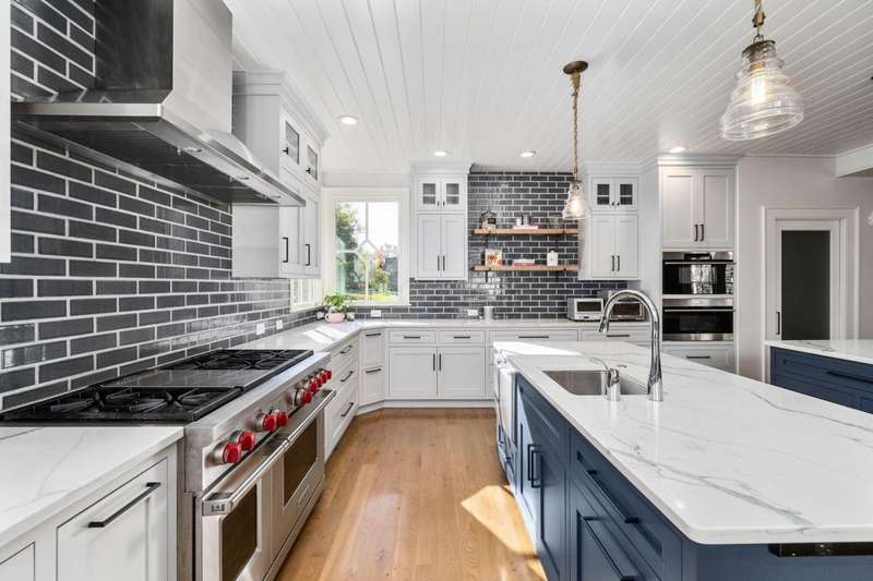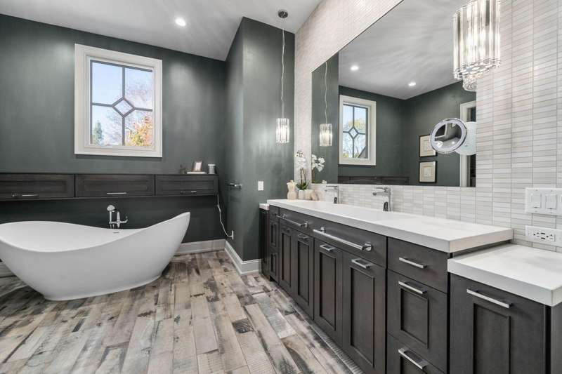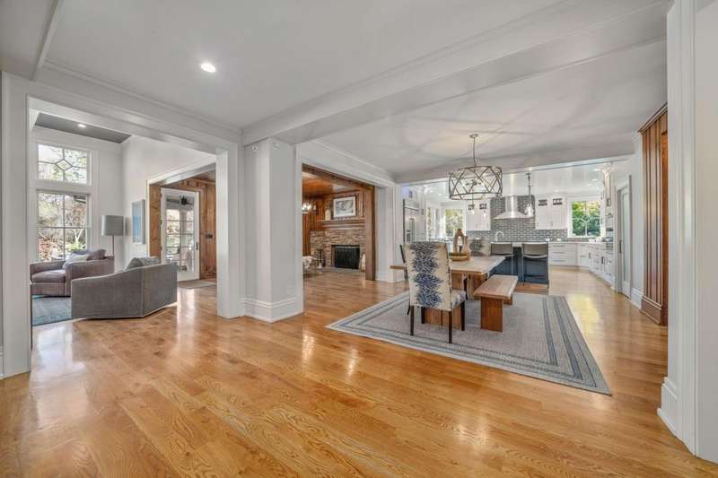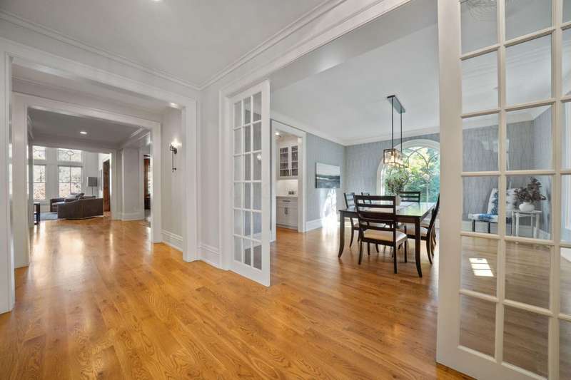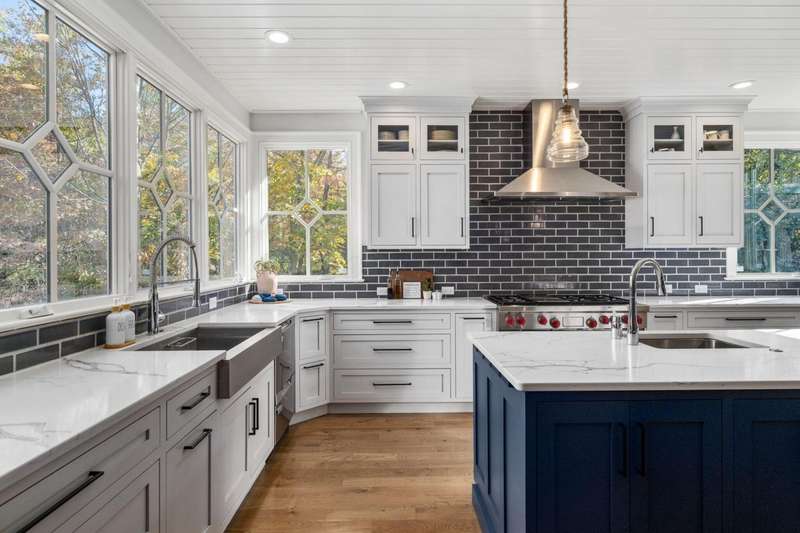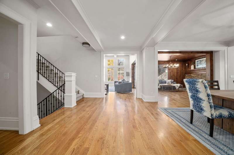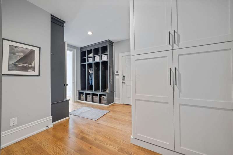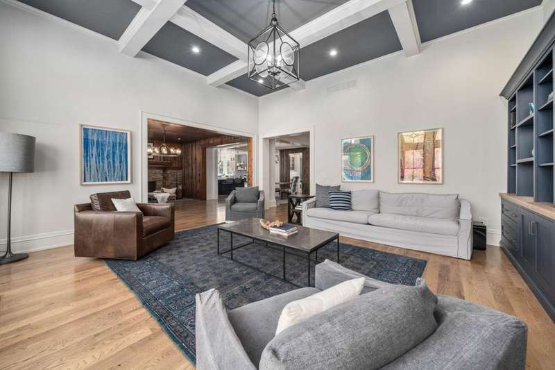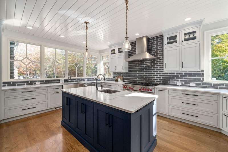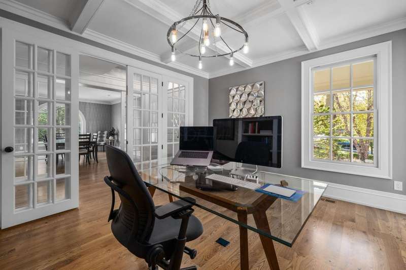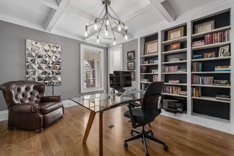 Experience true luxury living in this stunning New England-inspired shingle-style estate, nestled on nearly one private acre backing to woods in the prestigious Tartan West community. This home blends timeless architecture with exquisite modern design. Entire first floor is 4 1/4 inch solid white oak hardwood floor. Magazine-worthy chef's kitchen features dual oversized quartz islands, custom cabinetry, fireclay tile backsplash, built-in refrigerator/freezer, two dishwashers, 48'' Wolf gas range with double ovens, wall oven with microwave, and a dedicated coffee station with water line. A spacious pantry and butler's pantry with wine refrigerator complete this extraordinary space. The two-story great room impresses with a coffered ceiling, custom built-ins, and a dramatic wall of windows overlooking the serene backyard. Enjoy the hearth room with wood-burning fireplace, elegant dining room with designer wallpaper, and private office with built-ins, coffered ceiling, and French doors to the back staircase.Retreat to the luxurious primary suite on the mezzanine level featuring a private sitting room/office, spa-like bath with programmable digital shower, soaking tub, and an expansive walk-in closet. Three additional bedrooms and two full baths are located one level above, along with a designer laundry room. The lower levels include a family/media/game room with wet bar, dishwasher, and refrigeration drawers, plus a guest suite with full bath and ample storage space currently set up as a home gym. Outdoor living is equally impressive???featuring a covered patio with fireplace, hot tub, fire pit area, and built-in grill with soapstone countertops. Additional highlights include a 3-car side-load garage with 3 - 220V EV charging stations, custom drop zone, newer roof, dual HVAC systems, tankless water heater, and Halo 5 water filtration system, automated lighting. Every detail reflects comfort and impeccable craftsmanship. Imported Sq Ft is incorrect. 6725 ATFLS.