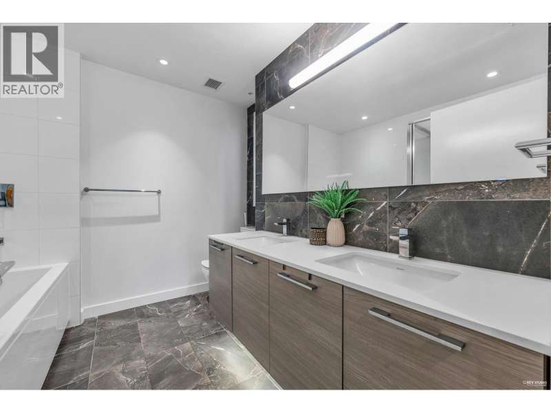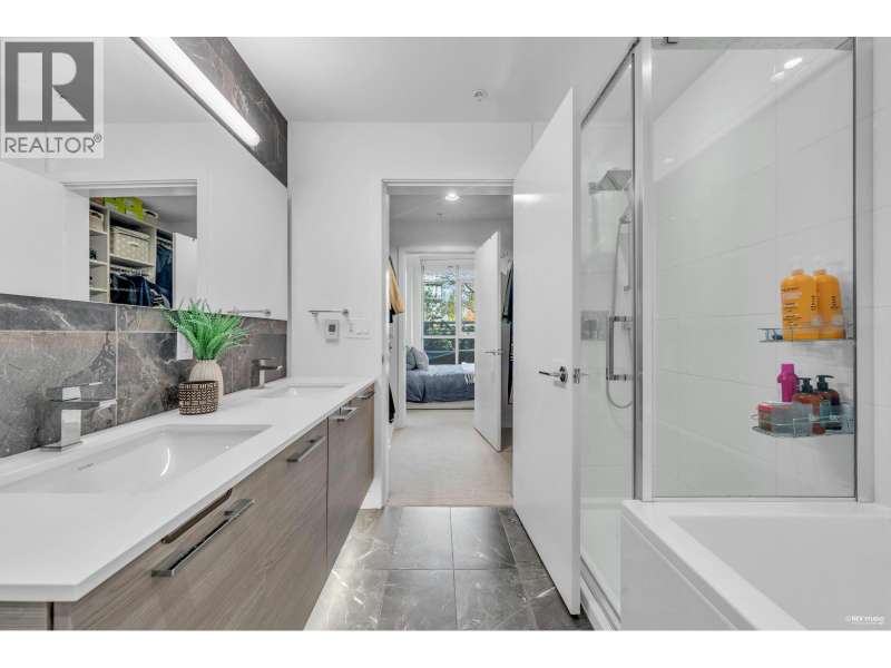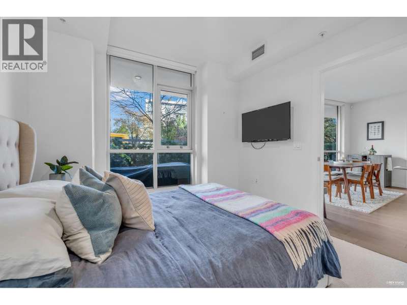 CONTESSA - NE corner 2 bdrm + den + laundry/storage room, 2 bath across from QE Park. Bright open layout with floor-to-ceiling windows and an expansive wrap-around patio that feels like townhouse living. Features over-height ceilings, A/C, Miele appliances, gourmet kitchen with quartz counters and backsplash, and wide-plank engineered hardwood floors. Spacious primary bedroom with walk-through double closets by California Closets and an ensuite featuring double vanities, a bathtub, and a separate shower. Central location-walk to Hillcrest, Oakridge Mall, QE Park, SkyTrain, and all amenities. Eric Hamber catchment. 1 EV parking & 1 bike locker included (2nd parking rental is possible for $100/month) *OPEN HOUSE Nov. 16 Sunday 2:30-4PM* (id:58403)
