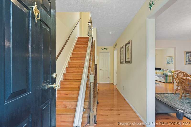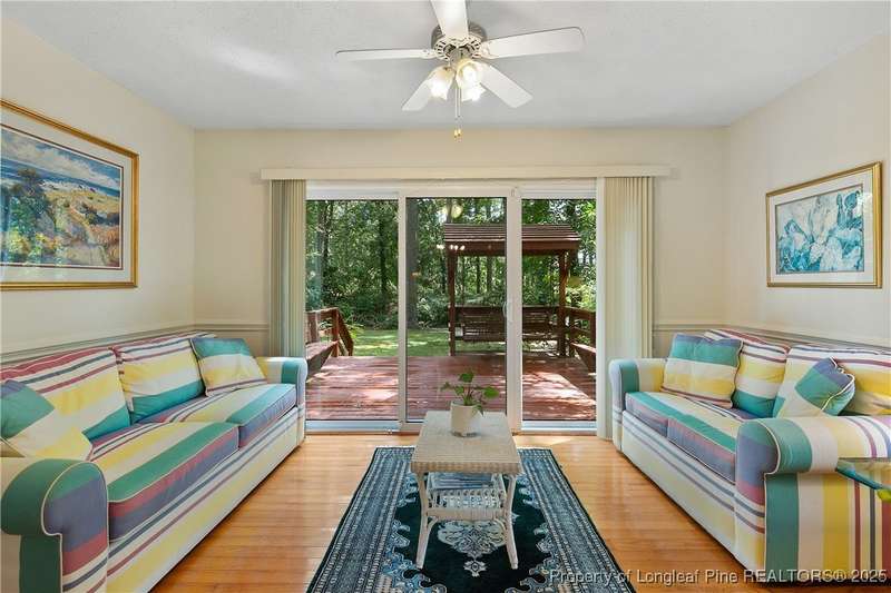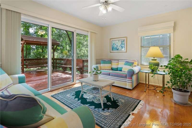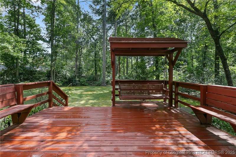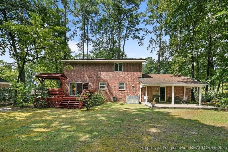 Location-location-location! Welcome to 3407 Sugar Cane Circle, a beautiful colonial-style home in the desirable Huntington Park community. This residence offers convenience to everything the city has to offer, including several private school options. The home boasts impressive curb appeal with its brick exterior, grand 2-story columns, covered front porch, professionally manicured front yard, and a 2-car garage. Inside, you'll find recently installed hardwood floors throughout the first level, the staircase, and the second-level hallway. The first level features an open-concept family room and kitchen with a spacious island, updated cabinets, and countertops, a remodeled half bath, and a sunroom with a sliding glass door leading to the backyard. This meticulously maintained home combines timeless architecture with modern upgrades, making it perfect for families, professionals, or anyone seeking comfort, space, and convenience. It's situated on a generous, private parcel of land lined with trees, ideal for outdoor living, entertainment, gardening, or future expansions. The covered patio is equipped with a flat-top gas grill, sink, and ceiling fan, perfect for hosting Sunday brunches. Additionally, there's a deck off the sunroom with wrap-around bench seating and a custom, built-in swing. This lovely abode is move-in ready with a new roof installed in 2017 and new HVAC in 2020. Sellers are gifting to the new owners the refrigerator, washer, dryer and also purchasing a one-year home warranty for peace of mind. Don't miss the chance to own this home priced aggressively to sell in the heart of Fayetteville!