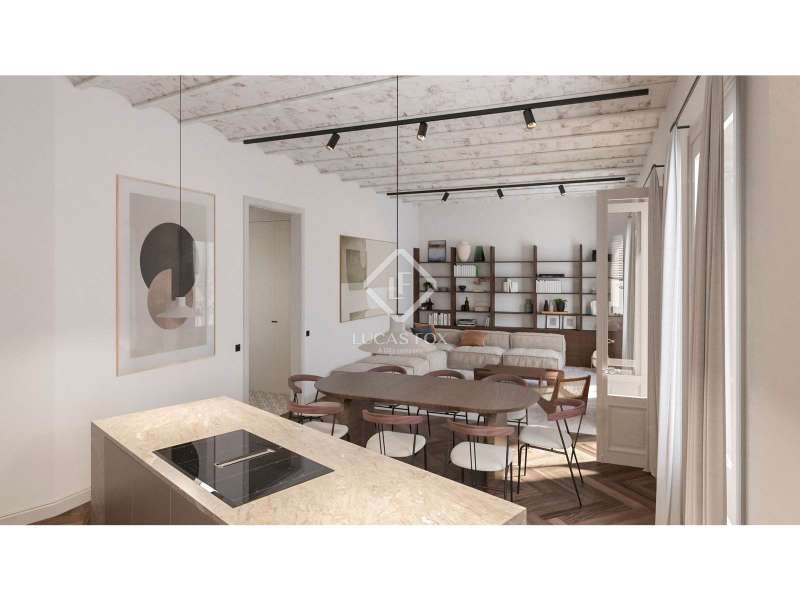 Beautiful apartment in the process of being completely renovated whilst maintaining many of the original features, for sale in the most attractive semi-pedestrian street Enric Garnados in Eixample. The apartment is a corner unit on the second floor of a stately building dating back to the early 20th century. This modernist building is by a renowned architect and has a lift. This is a dual aspect property with front views of the street and rear views of the interior plaza and has a built area of 110 m² according to the floor plan. The apartment could offer three double bedrooms, a semi-open living room and kitchen that spreads across three balconies. There are two complete bathrooms with showers and a guest toilet, a dressing room, and a laundry room. The apartment has heating. It also has restored all original features, keeping the high ceilings with mouldings and Catalan vaulted ceilings in the corridor and kitchen. The materials used are all the highest quality, with many of the fixtures and finishes being imported from surrounding countries in Europe. Please contact us to arrange a viewing.