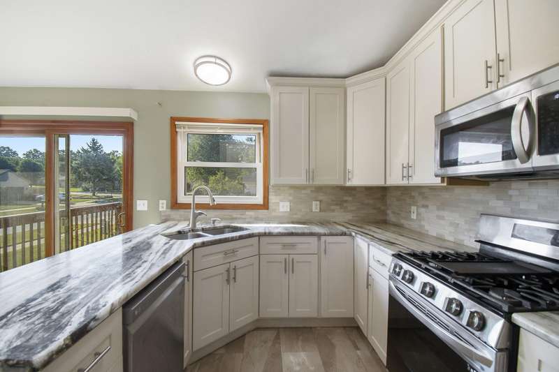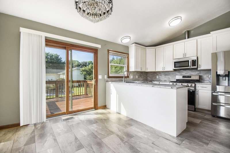 Beautiful updated 4bed, 2bath Bi-level offers comfort, style, and flexibility. The main floor features two bedrooms and a full bath, while the upper level includes two additional bedrooms plus a spacious bonus living room that could easily serve as a 5th bedroom, office, or playroom. Major updates provide peace of mind: newer roof (6 years), brand new energy efficient windows, updated heating and cooling system with new A/C, and newer carpet and flooring (1 year old). The remodeled kitchen boasts all new appliances, modern finishes like counter top G.stone, house comes with a freshly painted double deck, underground sprinklers, and a large yard perfect for entertaining. The two-car attached garage is complemented by driveway parking for three more vehicles. Located in the desirable Kentwood neighborhood, this home is close to parks, trails, shopping, and Kentwood Public Schools (Bowen Elementary, Crestwood Middle, East Kentwood High).
