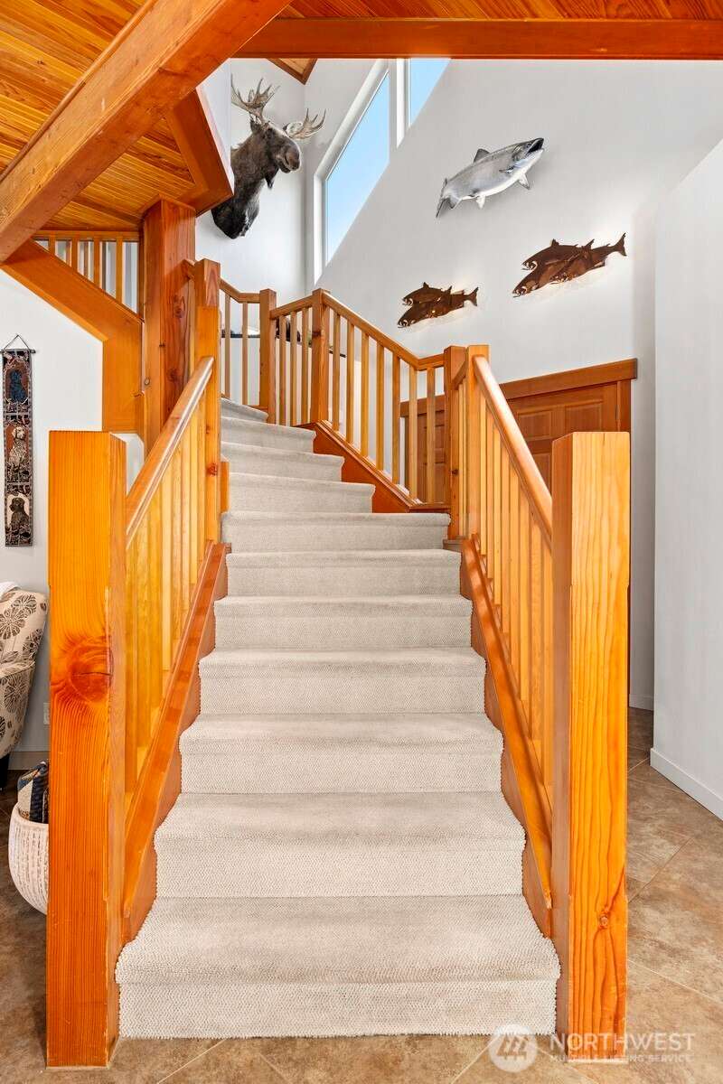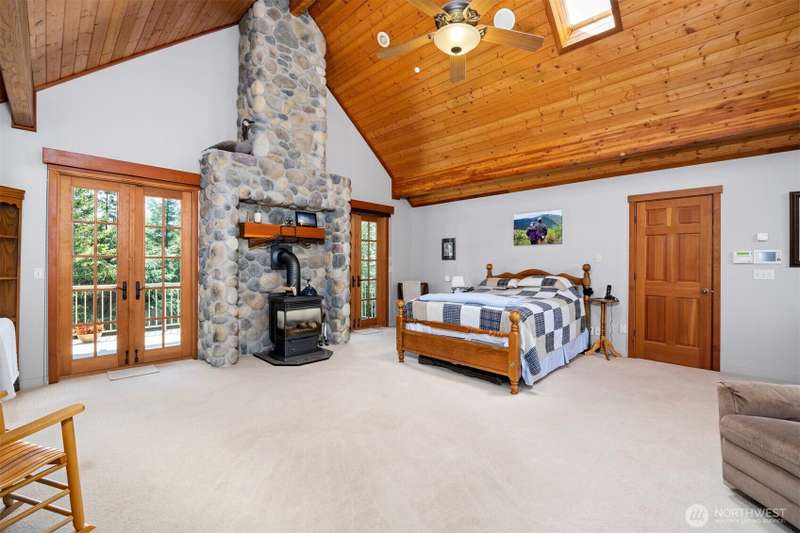 Secluded custom-built home on just shy of 70 acres featuring an 8-acre lake, headwaters to Haynie Creek's salmon, wildlife, and pure privacy. The property has groomed trails and roads for exploration. The home provides spacious living, with the primary suite on the entire upper floor, featuring a gas stove, 2 walk-in closets, and a private deck. The main floor has a living area and a rec room with a wet bar, while the lower level offers a media room, workout area, and safe room. Additional amenities include a 2,280 sq. ft. heated shop with a half bath, a 550 sq. ft. greenhouse with auto louvers, a covered dog run, a large chicken coop, and a 30 KW generator with automatic transfer switches that ensure power reliability.