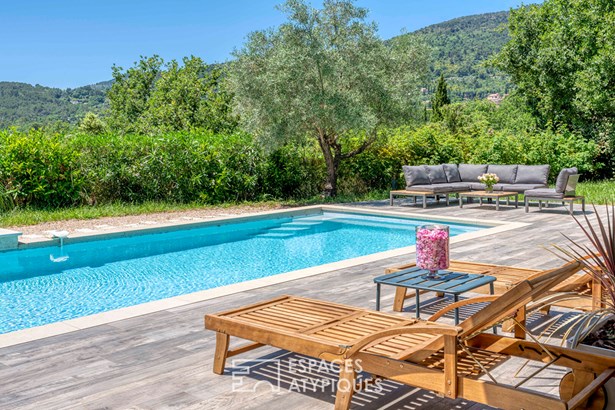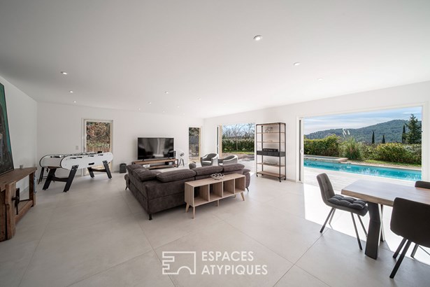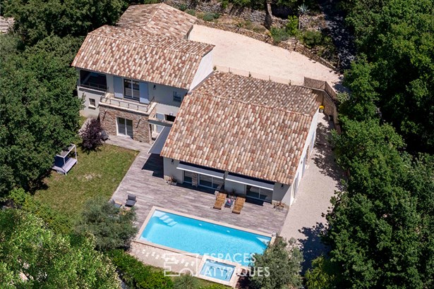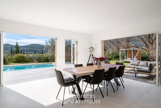 Nestled in a dominant position, a few steps from the village of Seillans and its picturesque alleys, this contemporary villa of approximately 223 sqm, set on a landscaped plot of 1,920 sqm, blends into a preserved natural setting.