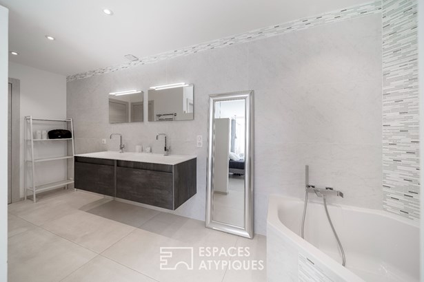 The outdoor space is an invitation to well-being, a 10×4 m heated swimming pool stretches out facing the sun and is accompanied by a spa area to prolong moments of relaxation. The landscaped garden, planted with Mediterranean scents, creates a bubble of tranquility where time seems to stand still.