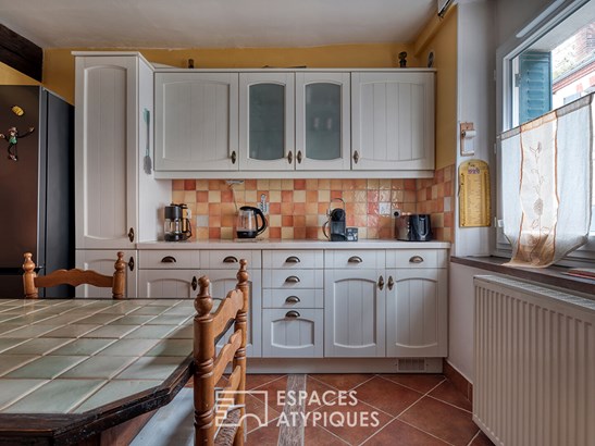 Opposite, an independent outbuilding completes the ensemble. Its bright, spacious room with a wood-burning stove offers endless possibilities ? guest house, artist's studio, home office, or workshop. A kitchen area and bathroom complete this level, while upstairs features a bedroom and mezzanine.