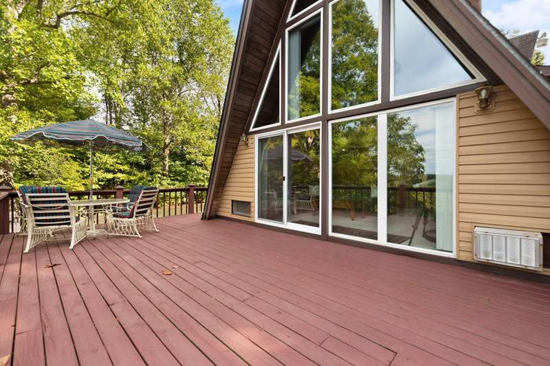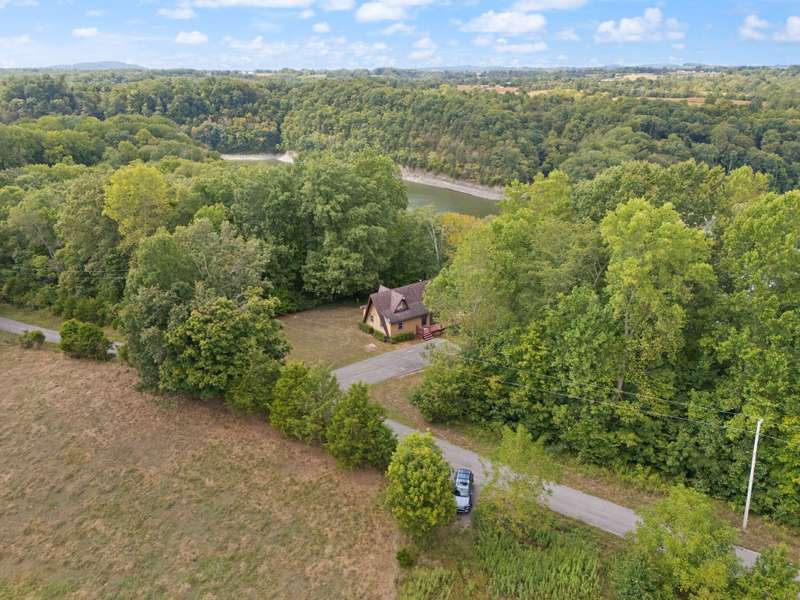 Beautiful furnished A-frame home with year-round views of Lake Cumberland, set on a full acre with two lots included! Offering 1,900 sq ft across three levels, this home features 4 bedrooms and 2 full baths. The main level showcases an open-concept living and kitchen area, filled with natural light from the large lake-facing windows. The partially finished basement adds even more potential, with a bedroom, full bath, laundry, workshop, and space that could easily be completed for additional living. Recent updates include a new HVAC system, new water heater, and fresh interior paint. Just minutes from the nearest boat ramp, this property offers excellent investment potential or the perfect retreat for lake living!
