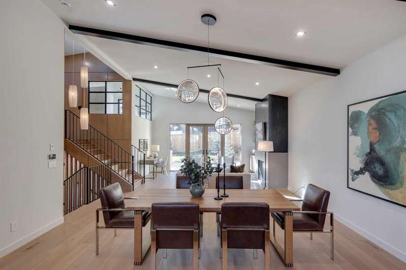 Welcome to 3423 23 Street NW, a mid century modern luxury residence, located in the highly desirable community of Charleswood. This newly built home offers over 3,400 sq. ft. of thoughtfully designed living space, showcasing an impressive blend of architectural sophistication, premium natural materials and state-of-the-art smart home features. The exterior makes an immediate statement with real brick, NewTech wood composite cladding, timber soffits and smooth stucco, creating a refined and low-maintenance façade that complements the mature, tree-lined street. Step inside to a foyer featuring white oak wall paneling and Limestone Bluestone pavers, setting the tone for the elegance carried throughout the home. The main level centers around a stunning chef-inspired kitchen equipped with a 48” Fulgor range, hoodfan & dishwasher, 36" Thermador fridge, all top of the line appliances. The perimeter counters are Temptation Quartzite w/leather finish, the island countertop - absolute Black granite w/brushed finish create a dramatic focal point, while custom white oak and painted cabinetry offer generous storage. The adjacent living and dining areas provide a seamless open-concept layout, highlighted by a gas fireplace with a Concrete Quartz surround, custom steel detailing, white oak millwork and expansive row of patio doors & windows that bathe the space in natural light. The upper level is anchored by an exceptional primary suite designed as a true retreat. The ensuite features striking “Fusion Wow” Quartzite, micro cement walls and ceilings in the shower, Riobel fixtures, a rain shower, freestanding tub and heated porcelain floors. A home office is adjacent to the primary bedroom. Two additional spacious bedrooms share a stylish Jack and Jill bathroom with Concrete Quartz finishes and glazed porcelain tile. A beautifully designed laundry room with LG large-capacity appliances, stone counters and built-in drainage adds convenience and functionality. The fully developed lower level offers a versatile media & recreation area with custom oak paneling, a fourth bathroom with heated floors and ample storage. This space is ideal for family living or entertaining guests. Comfort and convenience are elevated with integrated smart home technology, including Lutron lighting control, SONOS built-in speakers across five zones, HIK vision exterior security cameras, Wi-Fi controlled heated floors, multi-zoned furnace and central air conditioning system for year-round climate control. A heated double garage with hydronic in-floor heating and EV charging r-in provides both practicality and modern convenience. Every element of this home reflects careful craftsmanship, timeless design and luxurious functionality. Located on a quiet street just moments from parks, schools, the University of Calgary and urban amenities, this extraordinary residence delivers the perfect combination of elegance, innovation and everyday comfort in one of Calgary’s most sought-after neighbourhoods.