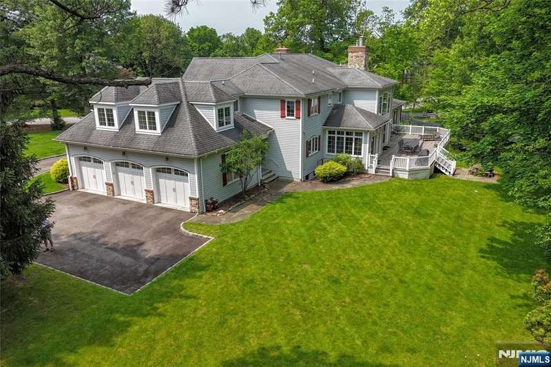 GRAND & ELEGANT describes this stately colonial home that sits in a peaceful setting in a neighborhood of prominent properties. Offering 6100 sq ft of suburban living space, this distinguished residence offers a harmonious blend of luxury & comfort, featuring 5 BR, 5 FB and 2 HB, ideal for those seeking a refined living experience. The main entry opens to a grand 2-story foyer. GLEAMING HARDWOOD floors & ELEGANT MOLDINGS, engulf a great room with floor to ceiling windows, w/ access to the outdoor deck. The expansive floor plan is designed for seamless entertaining including a banquet sized DINING ROOM. Culinary enthusiasts will appreciate the GOURMET CHEF'S KITCHEN w/ 2 center islands, 2 sinks, custom cabinetry, granite counters & top appliances. Eat in kitchen allows for views of wooded areas or having your morning coffee outside on the deck. The 1st floor encompasses a PRIMARY STE w/ sitting rm, walk-in closet, & luxurious bath, again having the option to access the backyard deck. The 2nd floor incl. 4 large BR & 3 FB. The bridge hallway overlooks the Great room & foyer entry & continues to laundry room & an expansive bonus room. Take the back staircase to the kitchen, 1st floor laundry, mudroom & 3 car garage. An impressive FINISHED BSMT that spans the length of the entire home awaits. This versatile space incl. a built-in bar, BILLIARDS TABLE (incl in sale), a dedicated cigar & game-room (ventilated), as well as an expansive recreation space. THIS HOME AWAITS YOU!