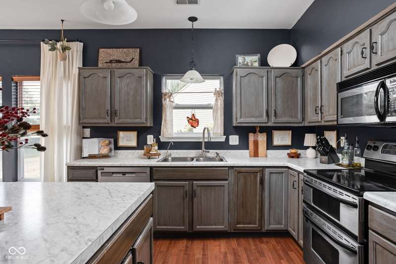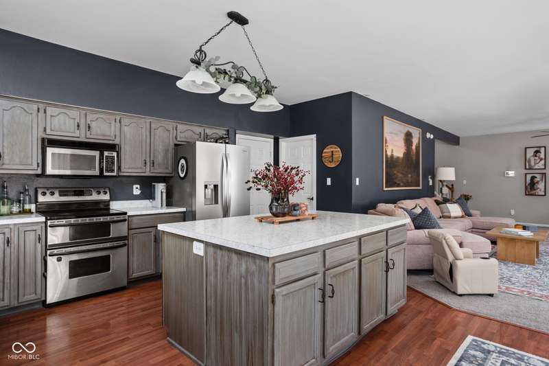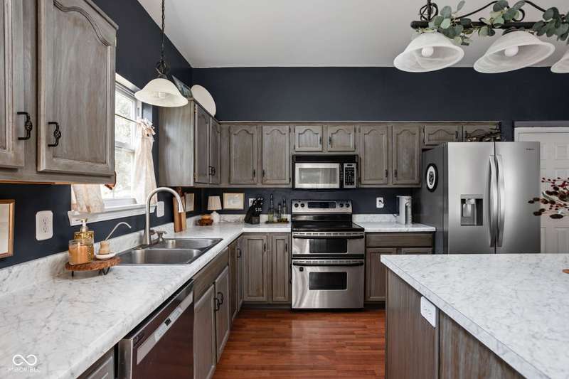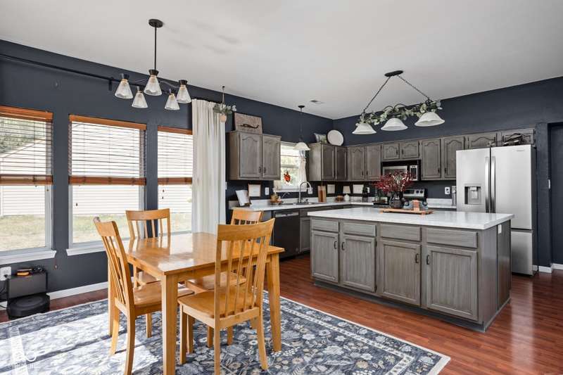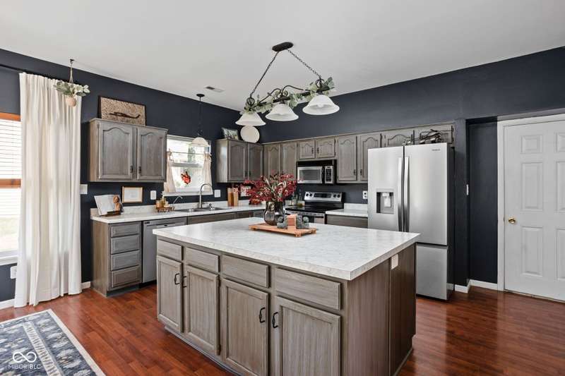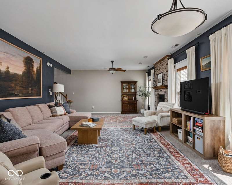 Step into this light and bright Brownsburg home offering over 2,300 square feet of inviting living space, thoughtfully designed for both everyday living and entertaining. The open floor plan centers around a spacious living room with a cozy woodburning fireplace-the perfect place to relax or gather with family and friends. The living area flows seamlessly into the kitchen, which features a large center island, newer stainless steel appliances (including a brand-new refrigerator), a generous walk in pantry, upgraded cabinetry offering ample cabinet space, and plenty of room for a dining table! The main level also includes a private office-ideal for working from home, homework space, or a playroom full of toys! Upstairs, you'll find all bedrooms along with a versatile loft that's perfect as a second living area or playroom. The primary suite includes a private bath with double vanities, brand new shower insert, and TWO spacious walk-in closets. This home has been thoughtfully cared for with fresh exterior trim paint, a newer roof (2019), and 2 year old HVAC and water heater (2023). Extra storage is easy with a mini barn for tools and equipment. Step outside to enjoy the private, tree-lined backyard-perfect for quiet evenings or weekend cookouts! Located in the highly sought-after Brownsburg School District and just minutes from Ronald Reagan Parkway, this home offers a convenient commute and quick access to all that Indianapolis has to offer.