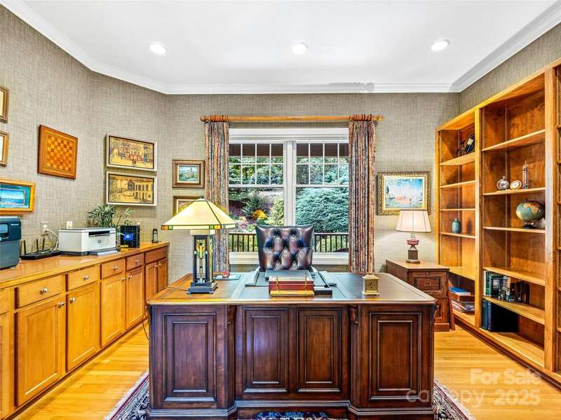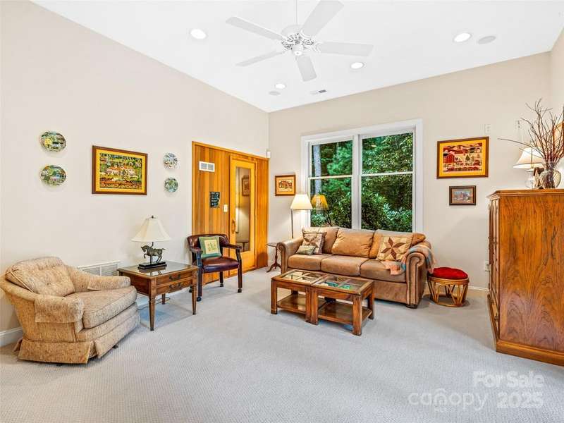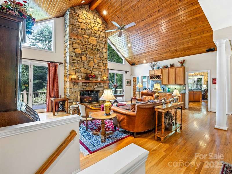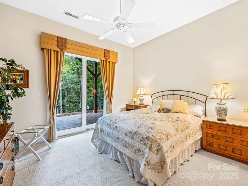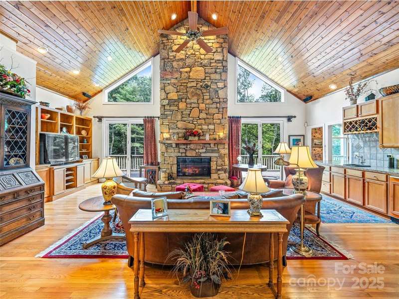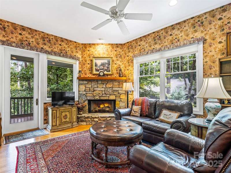 Welcome to your mountain retreat in the prestigious Champion Hills Golf Community. Nestled on a serene and private 1.92-acre lot, this residence combines exceptional ?great bones? with a flowing, well-designed layout?offering both immediate comfort and the chance to bring your personal vision to life. With over 2,500 square feet of main-level living, the home is ideal for both everyday ease and entertaining. The Great Room, anchored by a striking stone fireplace and wet bar, is perfect for gathering with family and friends. The kitchen opens to a cozy hearth room with its own fireplace?an inviting space for morning coffee or quiet evenings. A spacious dining area with elegant coffered ceilings and a refined study with custom built-ins add character and versatility. The main-level Primary Suite features a peaceful sitting area, direct deck access, and all the makings of a true retreat. The walk-out lower level extends the living space with two additional bedrooms, two full baths, a large family room with sauna, and a bonus room with built-ins?perfect for hobbies, a home gym, or media space. Sliding doors open to a private backyard sanctuary surrounded by nature. Located just 10 minutes from downtown Hendersonville, this home blends mountain tranquility with everyday convenience. A golf membership incentive is available with an acceptable offer. Now newly priced, this is a rare opportunity to invest in a home with timeless quality and abundant potential in one of Western North Carolina's most sought-after communities.