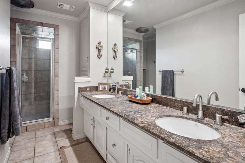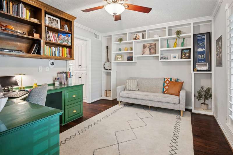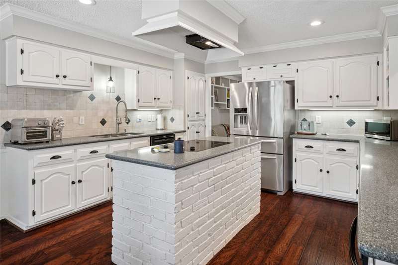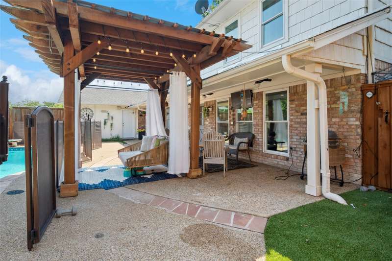 Prime location at the end of a cul-de-sac and loaded with charm! With a balcony across the entire front of the home and a welcoming front porch, you'll feel right at home. A beautiful stained door with sidelights opens to the foyer with gleaming hardwoods and an open concept floor plan. A home office is to the right as you enter with plantation shutters opening to the front yard. One of the home's two fireplaces is the focal point of the living room. An island with granite anchors the kitchen with stainless appliances. The breakfast room has a bay window with a window seat overlooking the backyard. The game room downstairs has the other fireplace flanked by built-ins. A full bath and a big laundry room are nearby. The primary bedroom suite has French doors opening to the balcony and an ensuite bath. Three secondary and quite spacious bedrooms are also upstairs The private backyard offers a sparkling pool with an elevated spa, a pergola extending the covered patio area, and artificial turf for easy maintenance. Windows have been replaced. Cast iron pipes replaced in 2022. This west Plano home will embrace you from the moment you arrive!
