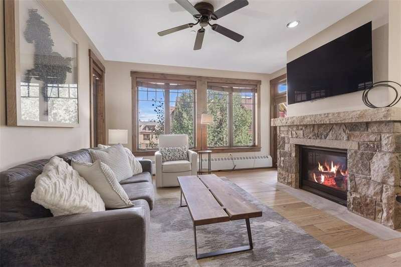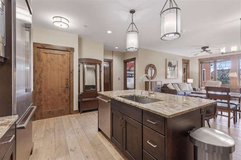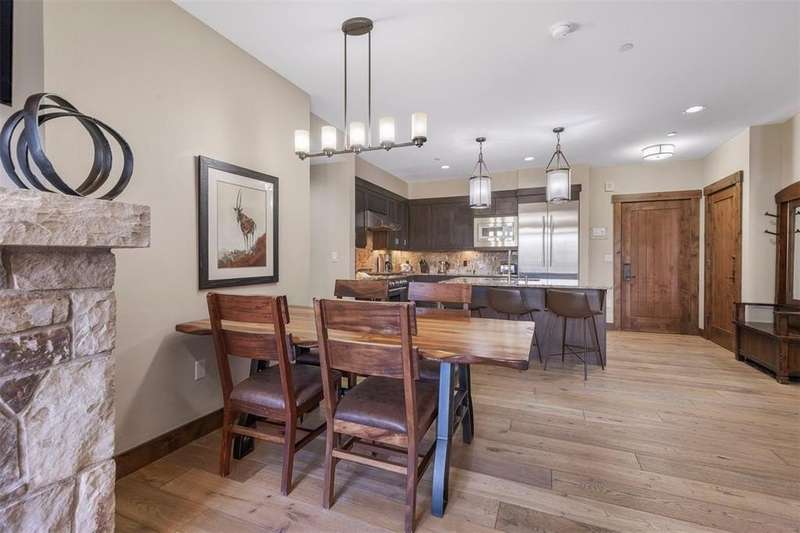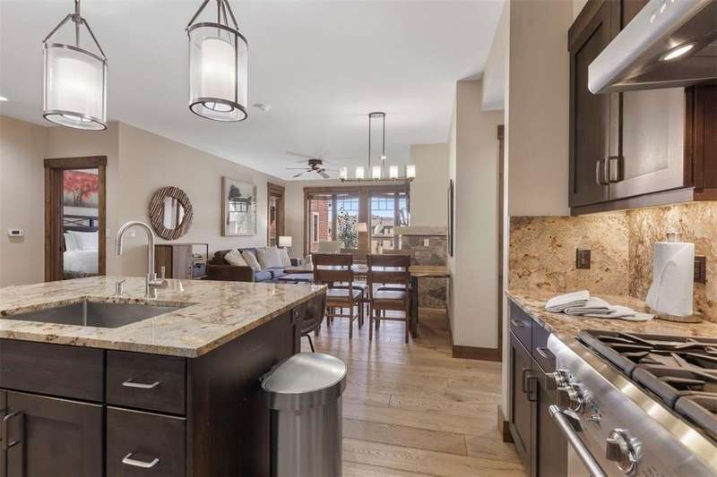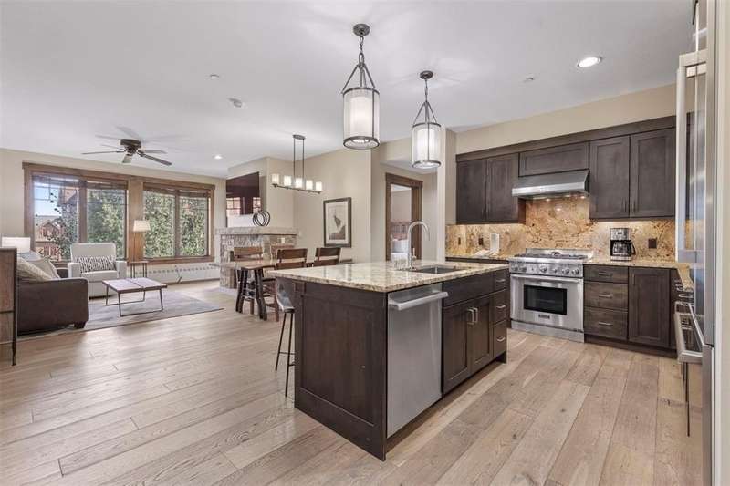 Set at the base of Peak 9 of the Breckenridge Ski Resort, in the heart of Main Street Station, this 2-bedroom, 2-bath Water House residence features an open-concept layout, warm wood floors, a cozy gas fireplace, and a chef’s kitchen with premium Thermador appliances. The primary suite includes a spa-inspired bathroom, perfect for unwinding after a day on the slopes. Additional highlights include a private ski locker, underground parking, and a secure owner’s closet. Blending luxury with year-round adventure, this condo is fully short-term rental ready. Enjoy ski valet service and a short stroll to the Quicksilver lift, or explore the vibrant dining, shopping, and après-ski scene along Main Street, all just steps away. After a day in the mountains, relax in the hot tubs or take a dip in the outdoor pool while soaking in sunsets over Breckenridge Ski Resort and beyond.