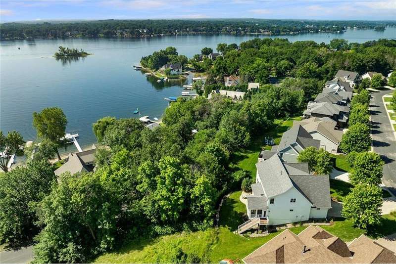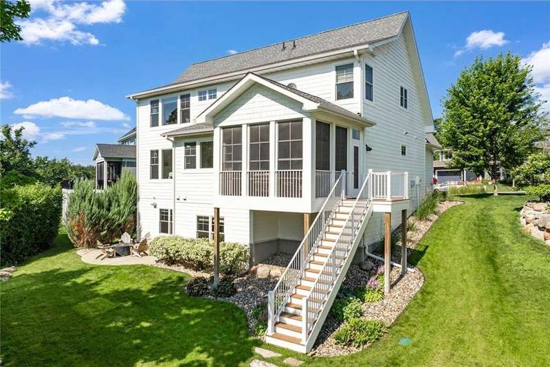 Custom 2-story home on over 1/2 acre near Prior Lake! Meticulously maintained, like new, excellent condition! Architecture by David Charlez Designs. Close to Sand Point Beach. 5 bedrooms with one on the main level. Attention to detail throughout. Enameled millwork, rustic hardwood floors, oversized windows to maximize the views. Main floor features an open floor plan, Quartz countertops, subway tile backsplash, large center island, shiplap accent walls, 19-foot foyer, walk in pantry, 3-season porch with a vaulted ceiling. Surround sound throughout the home and back yard.