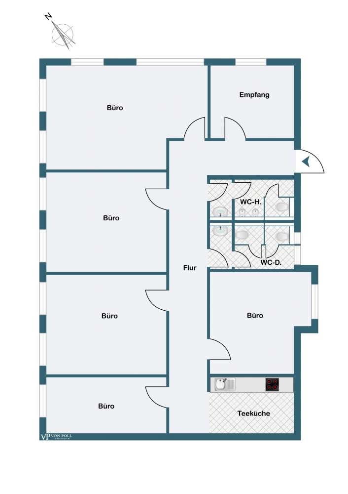 Bright, modern office space for rent in a well-kept office building in a central location with good highway access in Eltville-Martinsthal. The unit consists of 6 spacious, bright offices on the 1st floor with large window fronts, sufficient power sockets and network plugs. All rooms are wired and a fast internet connection provides a comfortable working atmosphere. A practical daylight kitchenette with built-in appliances and 2 ladies' and 2 men's rooms' toilets round off this office unit. The breathtaking view from the windows into the greenery and vineyards supports creative work. The central location with direct highway access to the A66 and B42 brings you and your customers together quickly. Frankfurt Airport is approx. 40 minutes away, Wiesbaden is approx. 15 minutes away and the banks of the Rhine in Eltville can be reached in approx. 5 minutes. The rental unit includes 5-7 parking spaces, which can be rented on request. (30,- € / parking space). The monthly basic rent is: € 2.130,- (plus VAT: € 407,70,-) The monthly service charges (incl. heating) are: € 320,- (plus VAT: € 60,80,-) The monthly gross rent (incl. utilities) is € 2,918.50 + parking fees The utilities are a flat rate, whereby the heating and water costs are billed according to consumption. (included in the flat rate). The tenant must be entitled to deduct input tax. The office space is to be rented from 01.06.2026. Or by arrangement. Have we aroused your interest? We look forward to your call!
