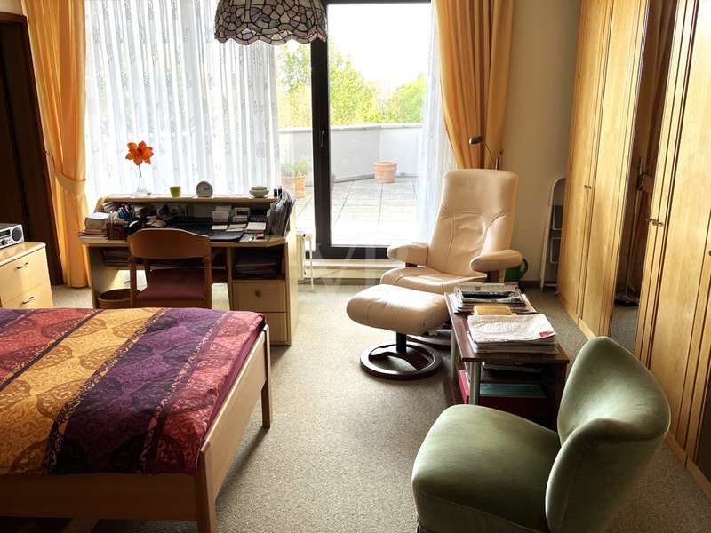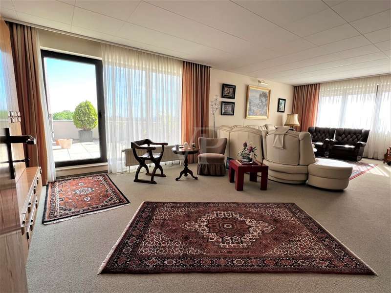 We are pleased to offer you this spacious penthouse with a living space of approx. 158 m² in a central location in Bischofsheim. The apartment is located on the 4th floor of a well-kept apartment building and is easily accessible by elevator. Particularly noteworthy is the approx. 28 m² terrace with outdoor fireplace, which offers a fantastic distant view. Pure enjoyment of the sun and relaxing evenings are guaranteed here. Another highlight is the large, light-flooded living and dining area with direct access to the terrace. The other rooms on offer include 3 bedrooms, one of which has an en suite bathroom and terrace access, as well as a guest WC with shower and a storage room. Both the size of the apartment and the room layout convey the feeling of living on one level in your own home. Floor heating underlines this impression by making the apartment independent of the other residential units. Sufficient storage space is provided by an approx. 20 m² cellar room belonging to the apartment. In addition, there are two single garages at ground level with electric door drive, which can be used to conveniently park your belongings at any time. These are included in the purchase price. All in all, this centrally located penthouse offers a generous amount of space for individual living ideas and an exceptionally large terrace with magnificent distant views. See the exclusivity of this offer for yourself at a viewing appointment.