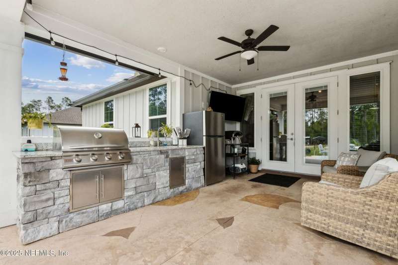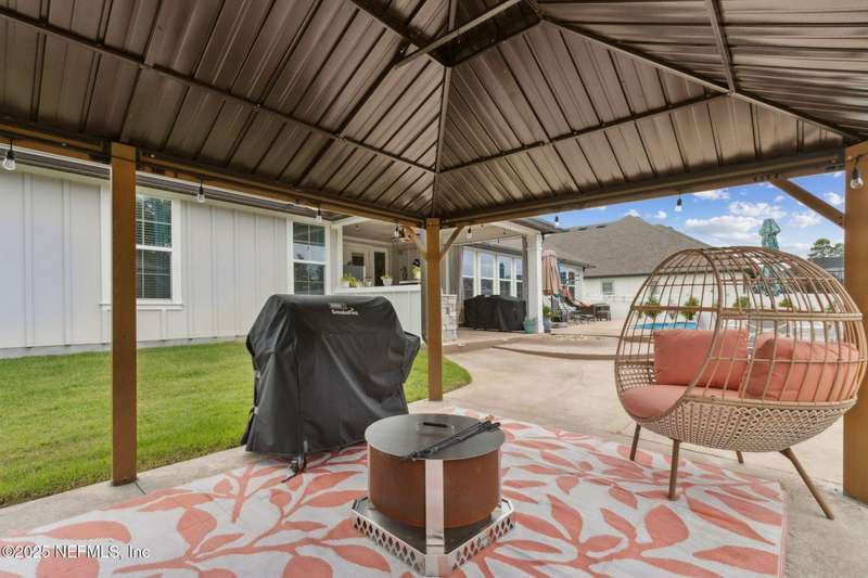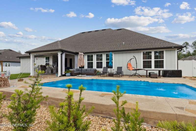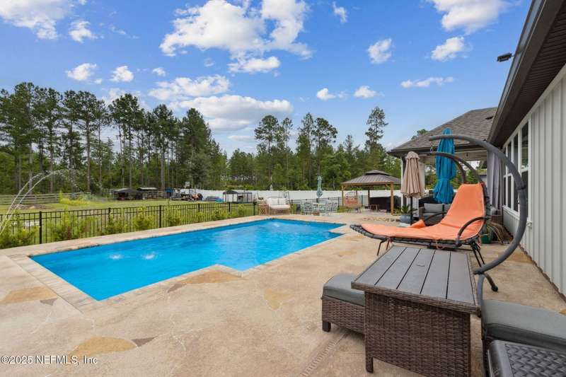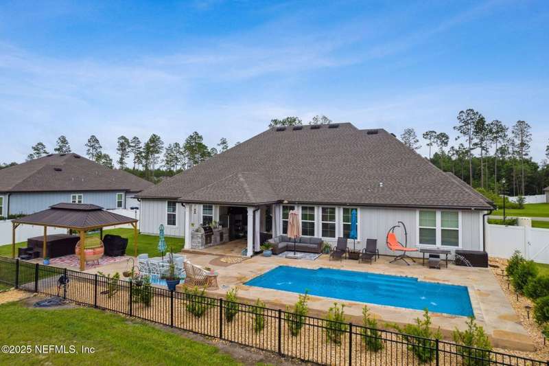 Gorgeous Pool Home on 2.25 Acres with an Outdoor Kitchen & 3-Car Garage! This stunning 4BR/3BA estate offers over 3,200 square feet of thoughtfully designed living space, combining elegance, comfort, and functionality. Step outside and be wowed by your private oasis, fully equipped with a heated & cooled saltwater pool (installed 2023) that boasts LED lights and fountain water features. The outdoor space also includes a 6-person hot tub, gazebo, outdoor kitchen (Fridge/TV included), and ample patio space for relaxing and entertaining year-round. On the inside, you'll discover a bright and open floorplan featuring soaring ceilings, a spacious office/den, and a versatile bonus room-perfect for a home gym, playroom, or theater room. The split bedroom layout ensures privacy, while the heart of the home is the gourmet kitchen, complete with granite countertops, a large center island, stainless steel appliances, massive walk-in pantry and extensive cabinetry and prep space ideal for any chef. The spacious master suite includes a spa-style bathroom with his/her vanities, granite countertops, walk-in shower, separate bathtub and an extended walk-in closet. The fenced backyard offers privacy with plenty of room to roam and store your toys - RV/Camper, boat, 4-wheelers, golf cart, etc..., while the new irrigation system and fresh landscaping add curb appeal and ease of maintenance. Equipped with a 20x20 concrete slab for your shed, 30 amp RV hook-up, chicken coop (If desired) and so much more! This one-of-a-kind property truly has it all! Don't miss your chance to make this dream home yours. Schedule your private showing today before this beauty is sold tomorrow!