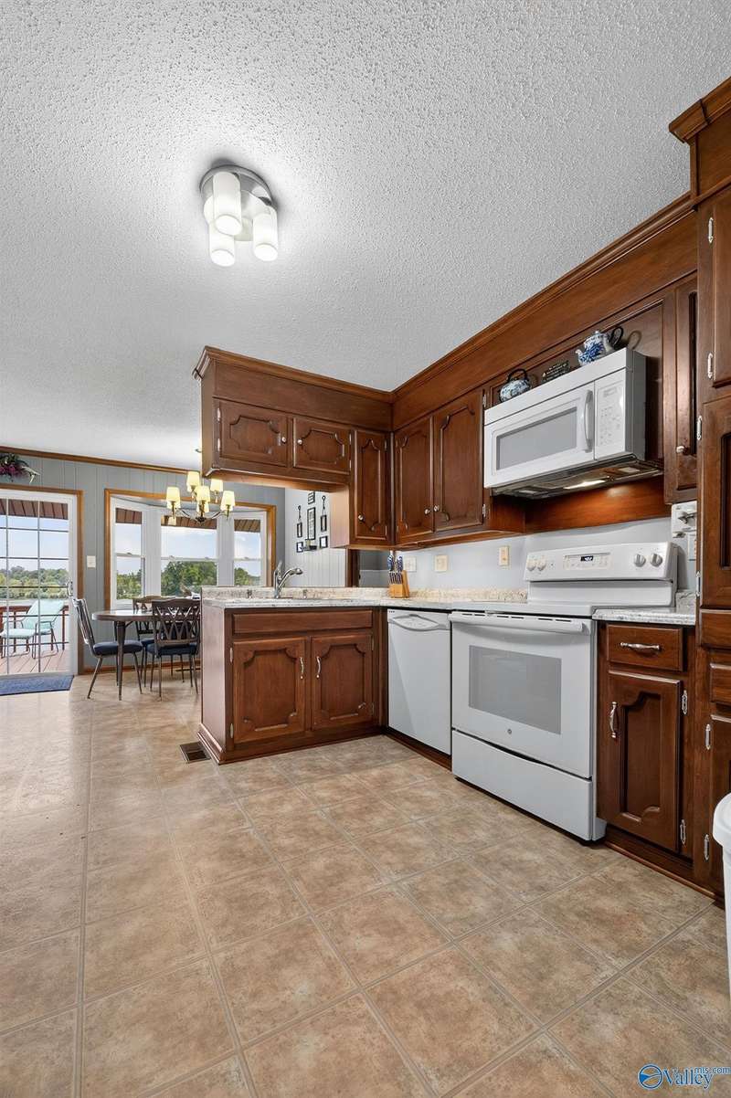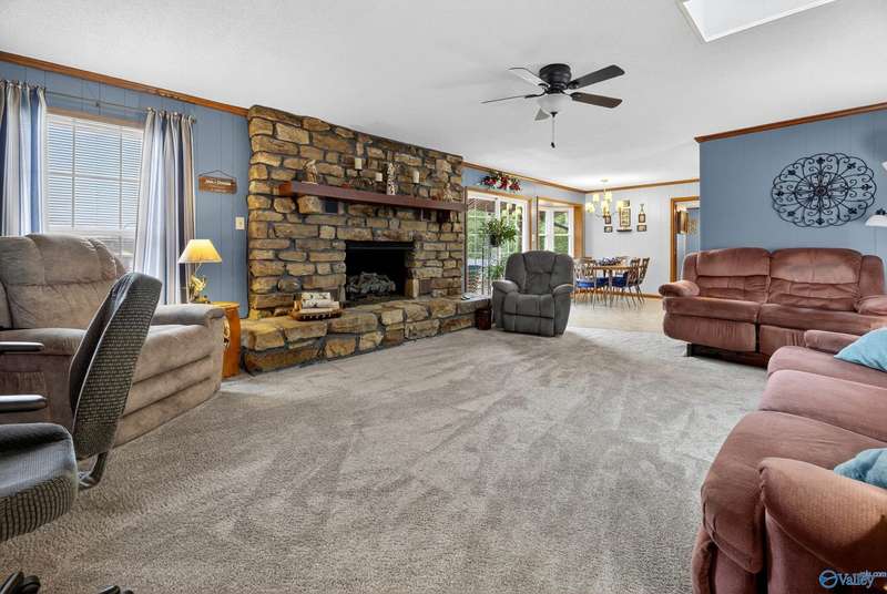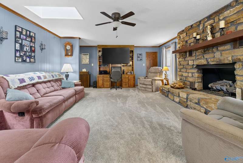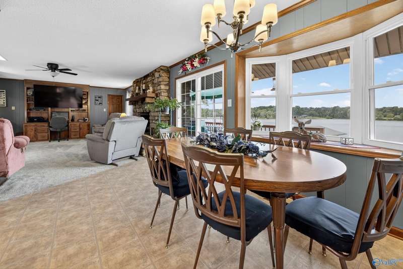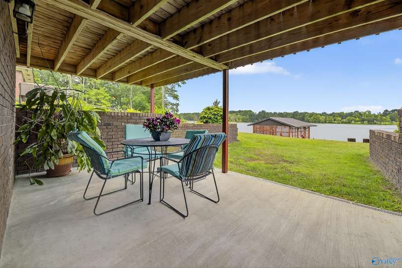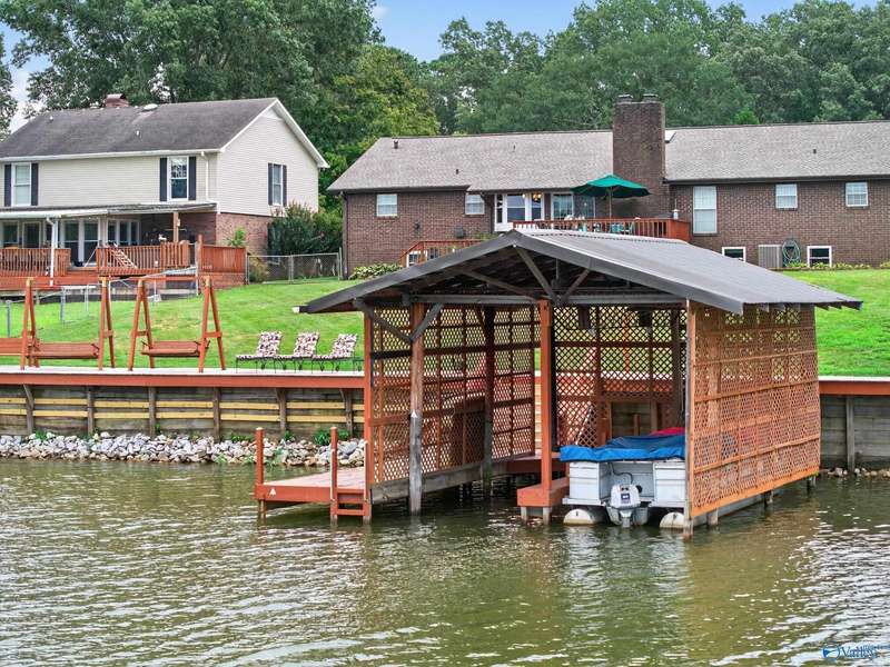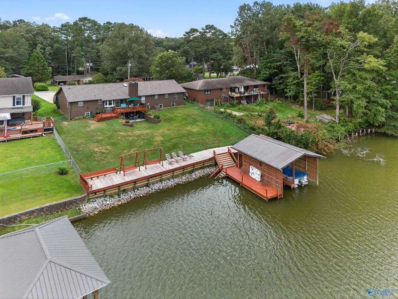 Hokes Bluff-Welcome to your waterfront home w/stunning sunsets & water views on the Coosa River w/year-round water & panoramic views offering 4BR/2.5BA w/comfort living & plenty of space to relax or entertain. The inviting living area flows seamlessly throughout the home; The Kitchen spaces provide the perfect setting for family meals or entertaining guests while enjoying the view or stone fp w/gas logs. Downstairs feat 46x28 game room; 19x20 concrete & steel re-enforced storm shelter the 4th BR; Covered fr porch w/marble inlays; Fenced bkyd has large 2-tiered deck; sprinkler system, 104x12 deck w/built in seating; private covered boathouse;This is the best of lakeside living!