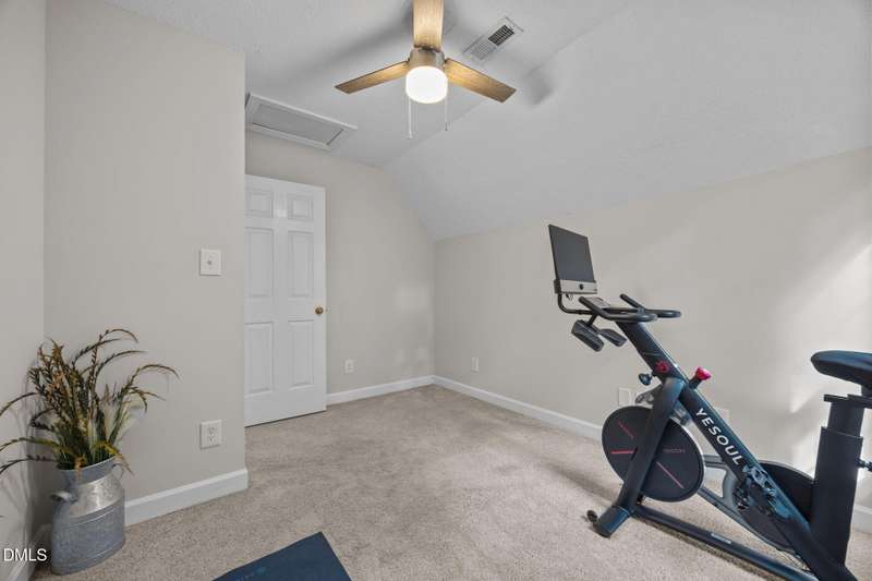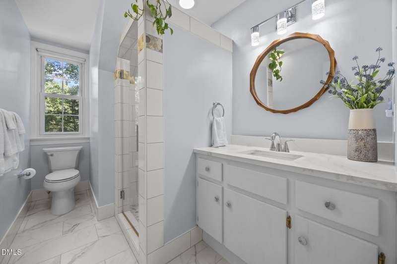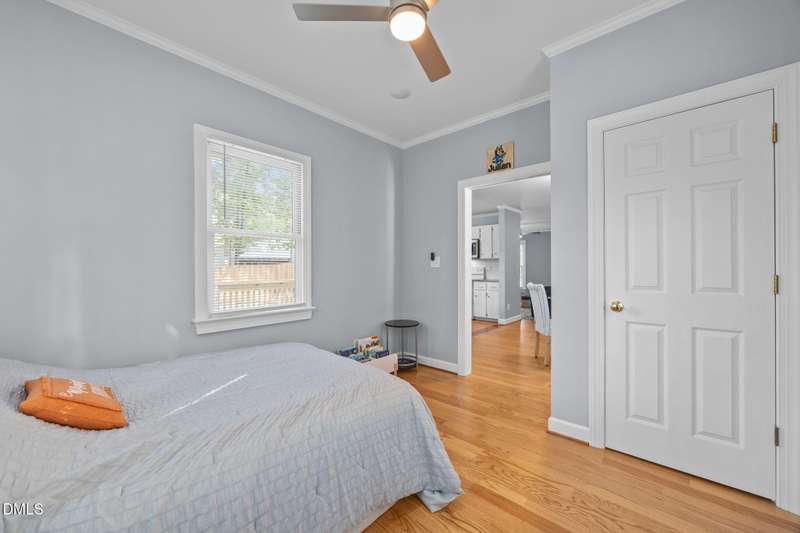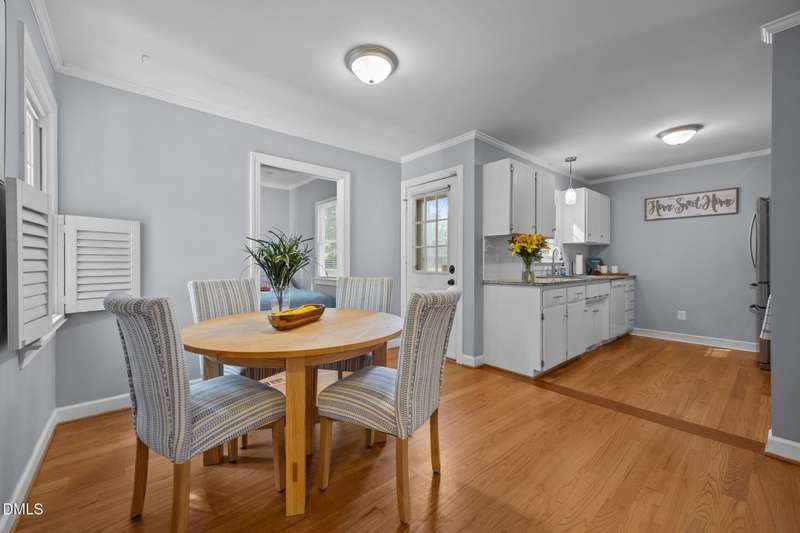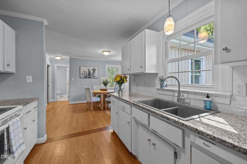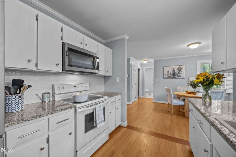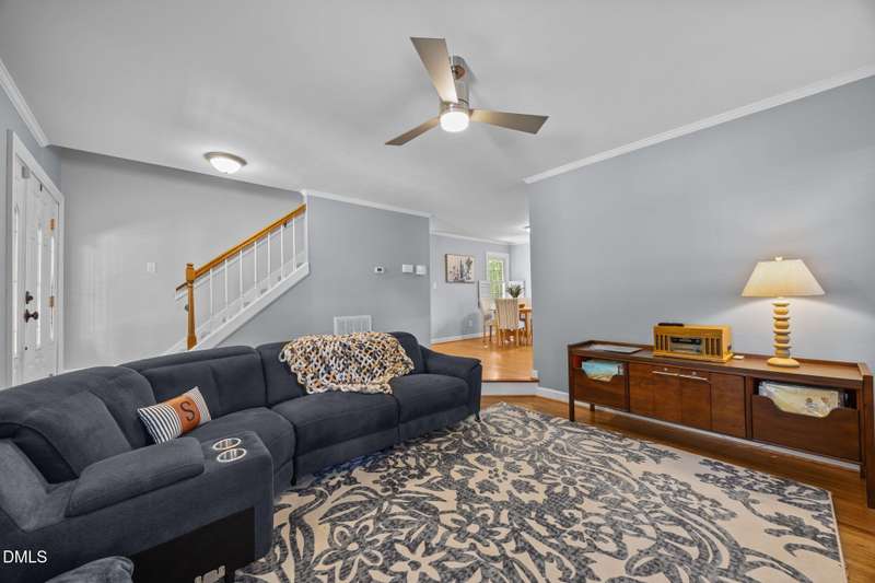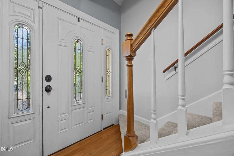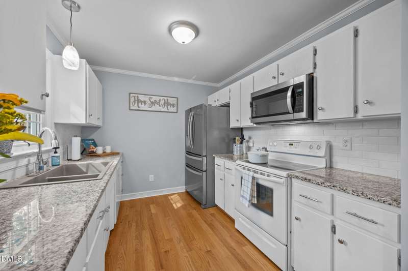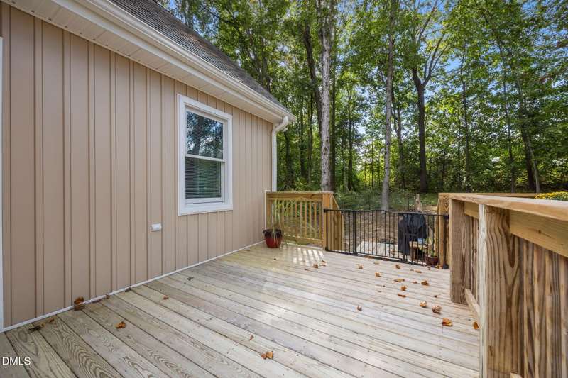 Welcome to Carrington Woods, where this beautifully updated transitional home offers a versatile and inviting floor plan. The main level features a spacious primary suite along with an additional bedroom that can serve as a guest room, office, or flex space. Upstairs, you'll find two more generously sized bedrooms and a thoughtfully designed full bath. The interior showcases upgraded granite countertops, a comfortable sunken family room, and a layout designed for both everyday living and entertaining. Step outside to a large deck overlooking a 1.42-acre wooded lot, providing both privacy and connection to nature. The backyard opens directly to the Mingo Creek Trail greenway, ideal for recreation and outdoor enjoyment. Located just a short stroll from Knightdale Station Park and the growing downtown area, this home offers convenient access to shopping, dining, and community amenities.