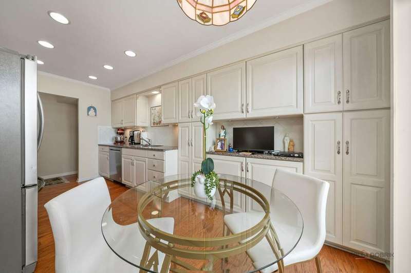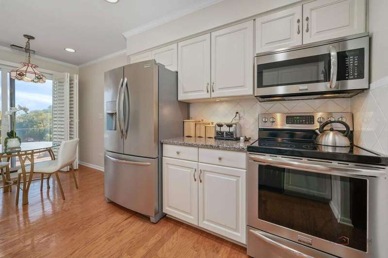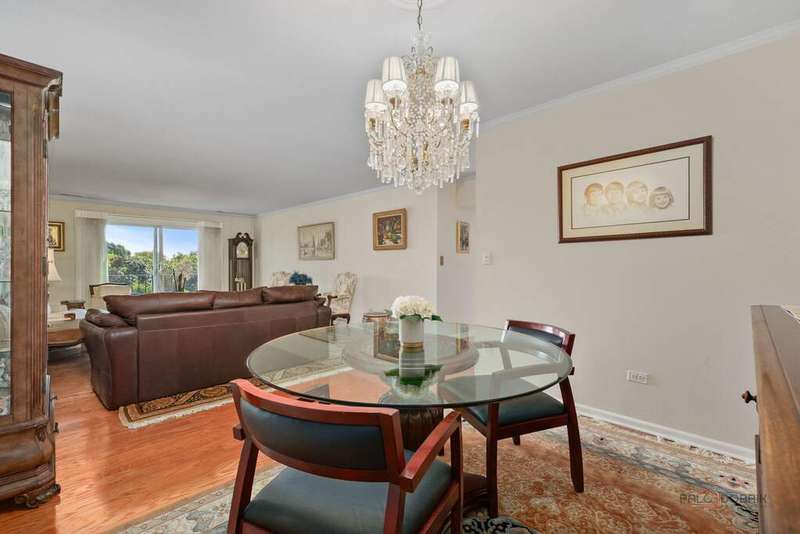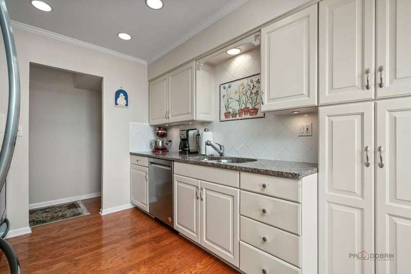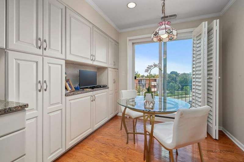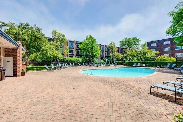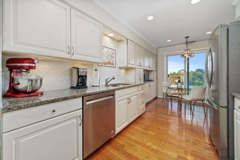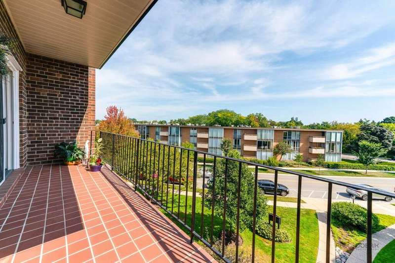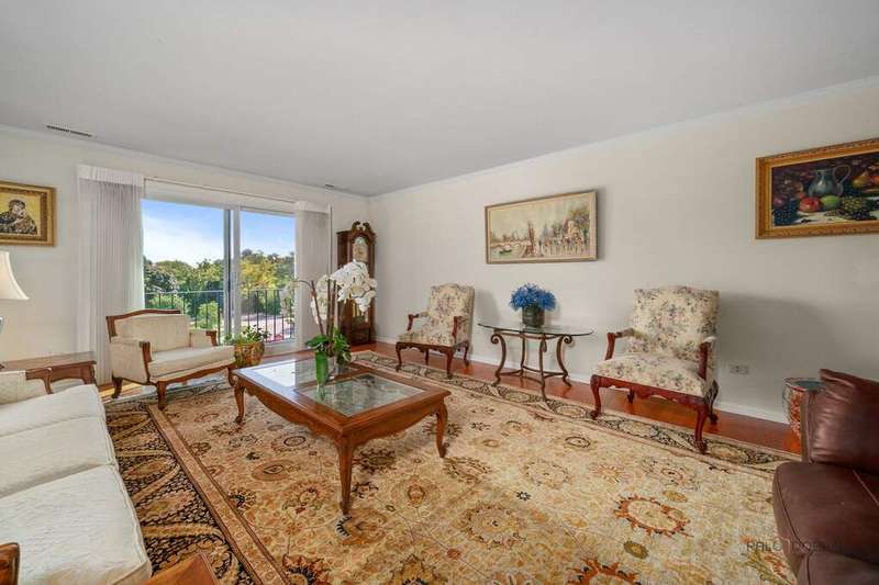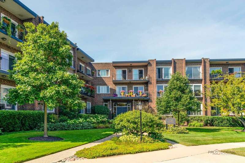 Beautiful and spacious 2 bedroom, 2 bath, 1,790 square foot, top-floor condominium with eastern exposure and a wonderful double balcony! Lovely living room and dining room with hardwood floors and neutral finishes. Newer kitchen with creamy white cabinets, stainless steel appliances, breakfast room, and sliding doors with plantation shutters open to the balcony. Guest room with closet, plantation shutters and access to the balcony. Large primary suite with separate adjoining flexible space that could be used as a sitting room, office, workout space, or more, plus an extra large primary walk-in closet. In-unit laundry room off of primary bath. Additional storage unit plus one heated parking space in the garage below. Great location near downtown Lake Forest, close to train, shopping, restaurants and more. The building features a swimming pool, exercise room, & guest party room. Only 1.9 miles to Lake Forest beach! Move right in and enjoy!