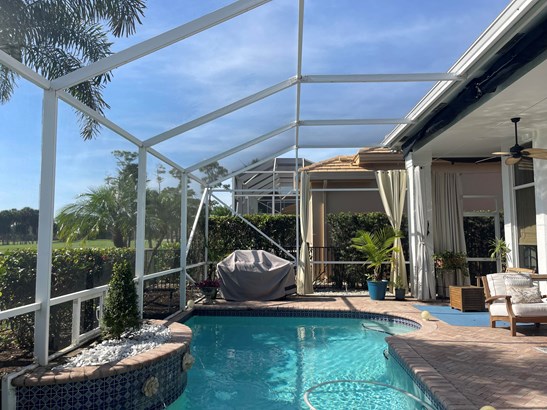 Mediterranean-style home features 3BR/ 4FB, along with screened-in lanai pool and picturesque golf course views. 2 car garage+ golf cart garage. The Ironhorse community is gated with 24-hour security. Rent includes weekly landscaping. Homeowners can join the Ironhorse Golf Club, tennis club and/or community swimming pool for additional fees.