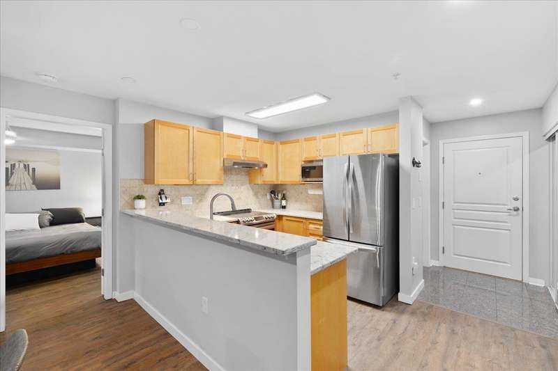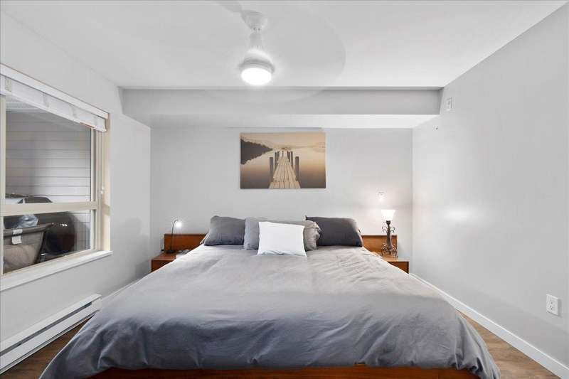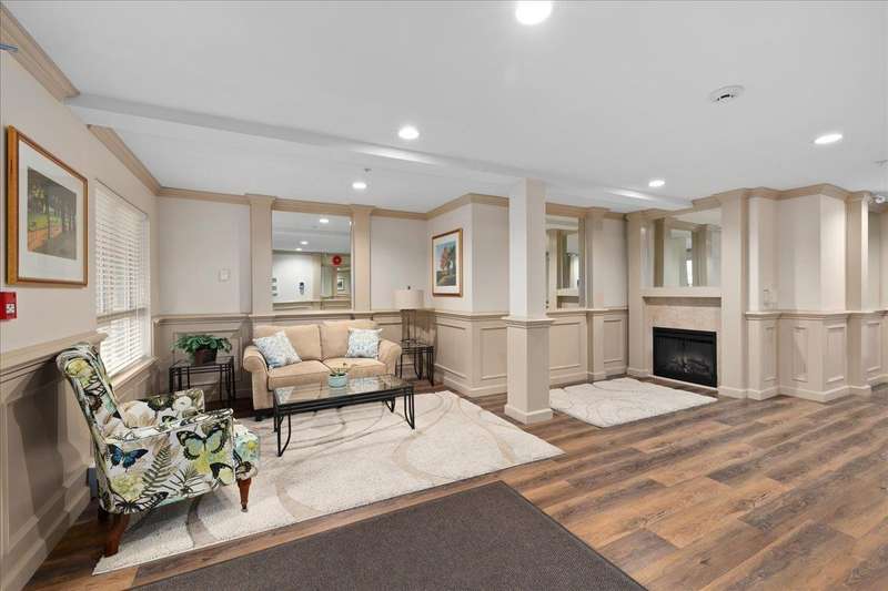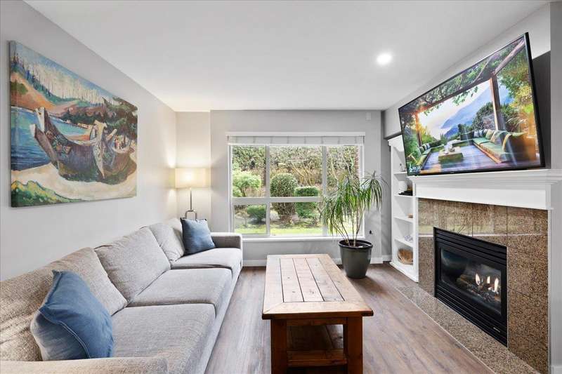 Enjoy tranquil GREEN SPACE VIEWS from this private ground-floor condo in coveted Muirfield Gardens! Move-in ready 2 bed+large den(or 3rd bdrm!) on QUIET SIDE of complex - not facing 152nd! Functional layout with no wasted space & luxury vinyl plank flooring throughout. Open kitchen boasts ample cabinet space, stone counters, breakfast bar & updated appliances. Spacious living/dining area with cozy gas fireplace (gas incl. in MF) opens to a fully covered patio-perfect for pets or entertaining! Bedrooms sit on opposite sides for privacy; primary has walk-in closet & ensuite. Large den is perfect for a home office or 3rd bdrm. Includes 1 parking (option to rent 2nd) & locker. Proactive strata with new depreciation report, roof (2024), & great amenities incl. guest suite & gym. Only steps to transit, shops & dining! Quick possession possible. (id:58403)
