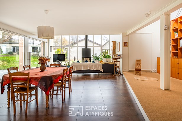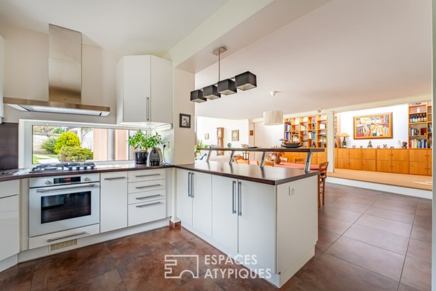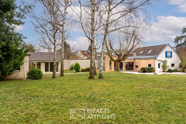 In the hyper historic center of the village of Villennes-sur-Seine, an old farmhouse from the 18th century, completely renovated and extended, reveals a totally unexpected living environment in a unique location. The property is spread over 1,495 m2 of landscaped garden. Combining the incomparable charm of the old and the sought-after comfort of the modern, a main building of 278 m2 on the ground (232 m2 of living space), decorated with two outbuildings of 39 m2 and 47 m2 (living space) where daily life can be envisaged on foot.