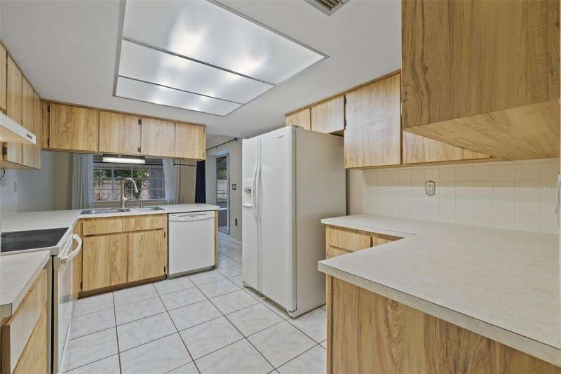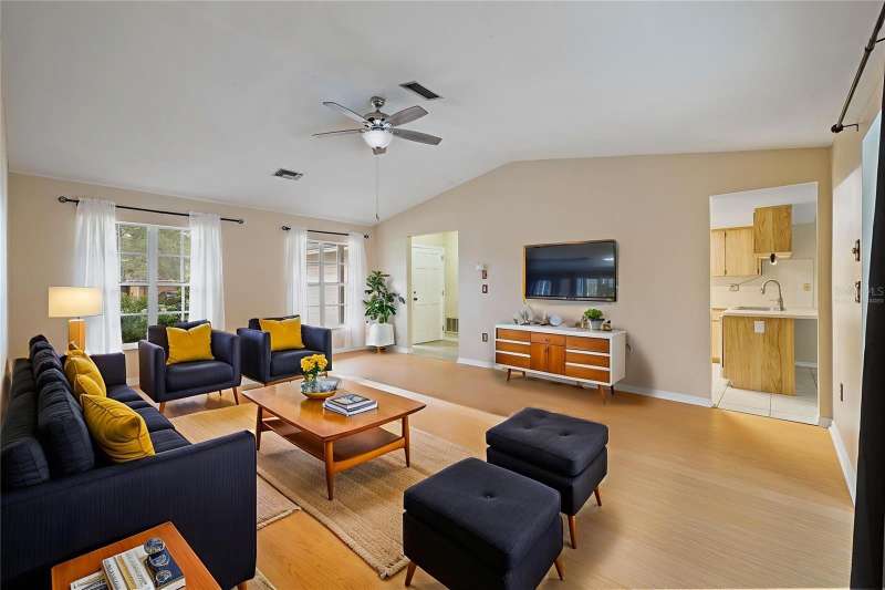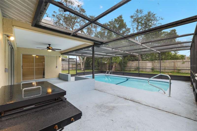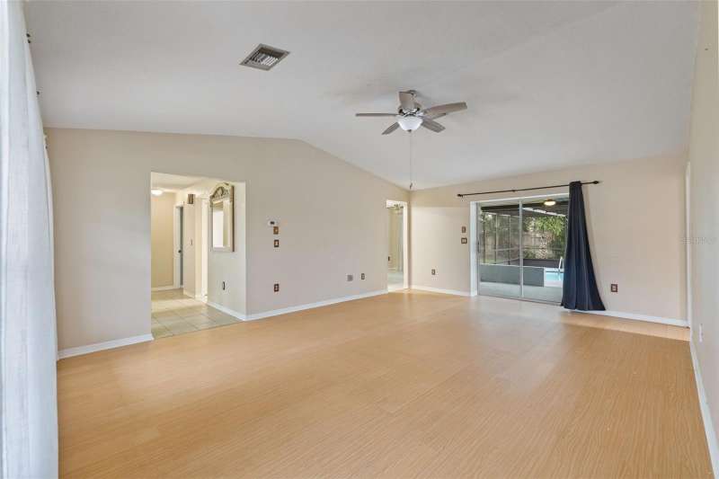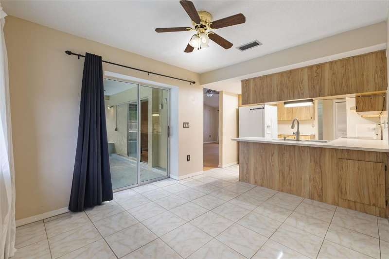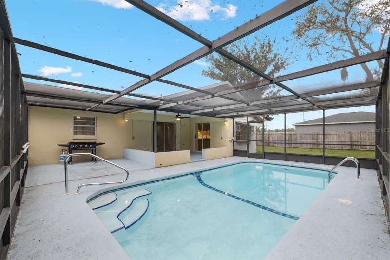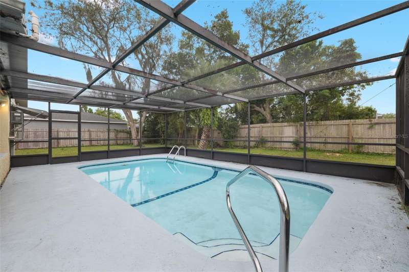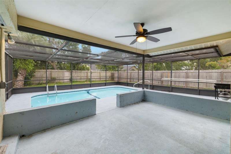 Short Sale. Short Sale. Stunning and well-maintained two-bedroom, two-bath pool home in the heart of Spring Hill, thoughtfully updated with a 2018 roof, 2019 HVAC system, and a newer pool pump and filter. This beautiful home welcomes you into a spacious living room with cathedral ceilings, laminate wood flooring, and sliding glass doors that open to the lanai. The kitchen offers plenty of space to cook and entertain with matching appliances, ample cabinetry, pantry, eat-in breakfast bar, bay window, and a cozy dining nook with access to the rear lanai. The primary suite features a generous bedroom with walk-in closet and en-suite bath complete with a large vanity and tiled shower. The guest bedroom and bath are equally inviting, offering a full wall-length closet, additional hall storage, and a tub/shower combo. A separate office or office adds extra flexibility. Step outside and enjoy Florida living at its best with a covered lanai, spacious screened pool enclosure, an additional open patio, and a sparkling pool. The fenced yard, side-entry garage with service door, and storm shutters make this home both comfortable and practical. This home truly has it all—schedule your private showing today before it’s gone!