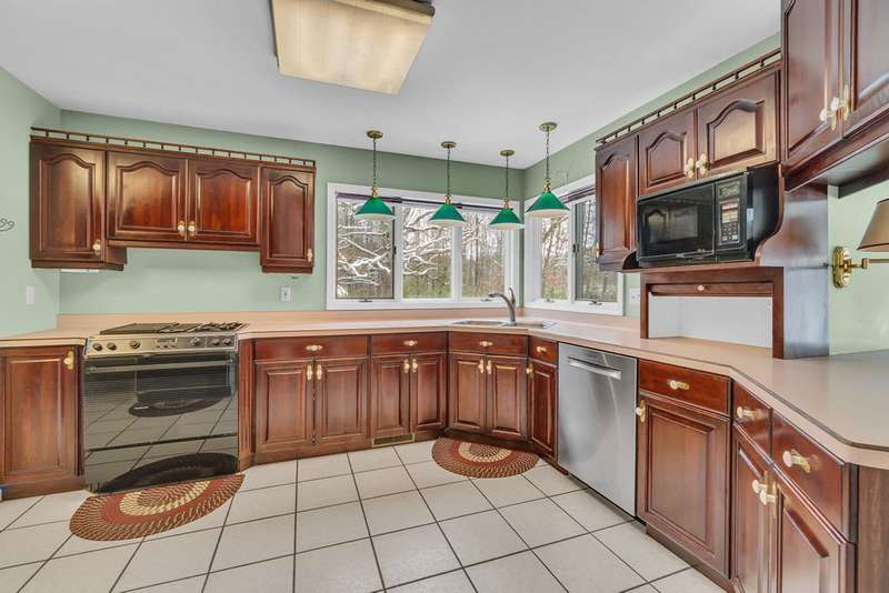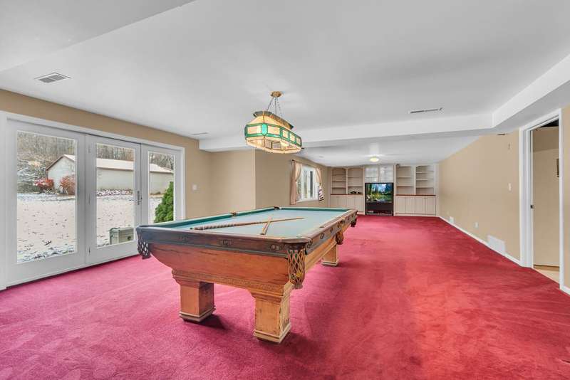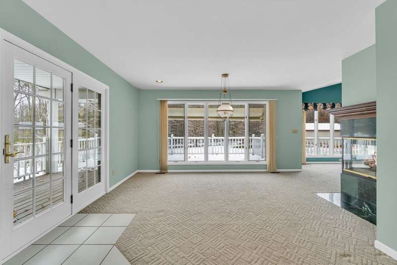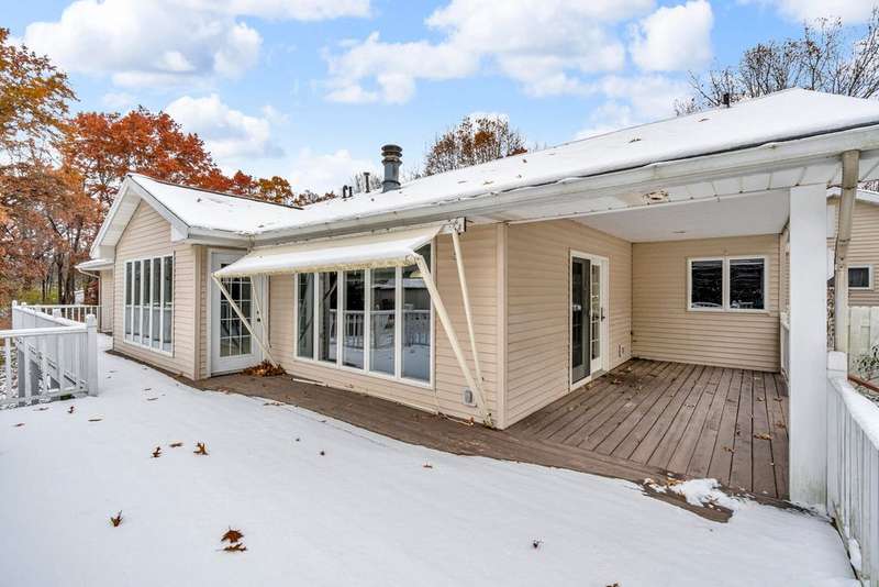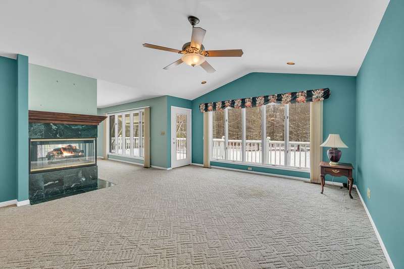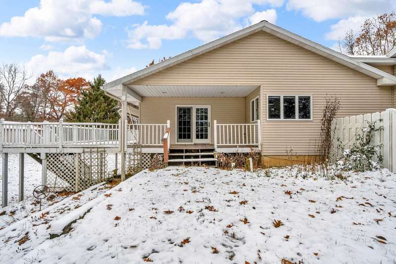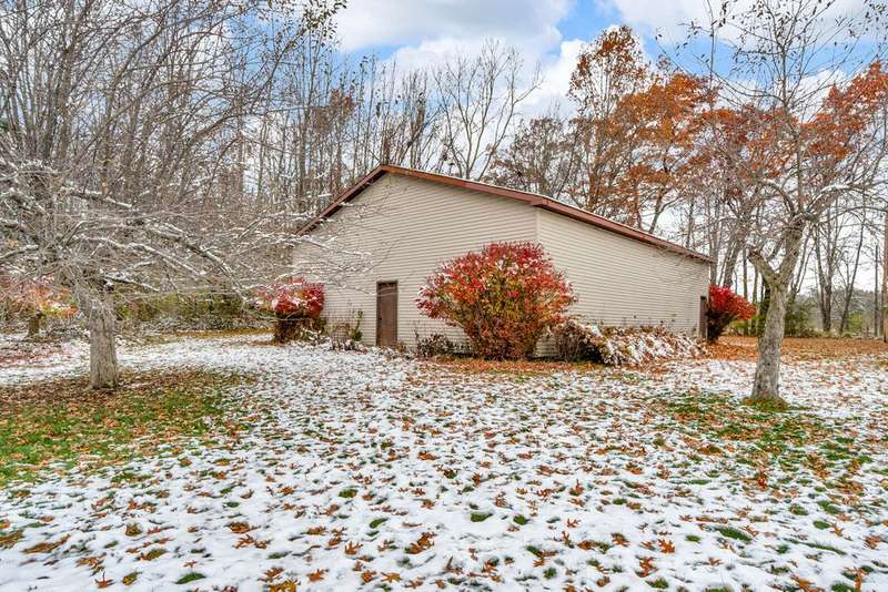Situated on 14.75 wooded acres you will find this Pristine sprawling ranch home offering 3BR/2BA, with finished walk out lower level, a 758 sq ft attached garage w/workshop & 1728 sq ft Pole Barn in Western School District. Enter into large foyer, home office, Kitchen w/pantry & cherry cabinetry, dining room, living room w/3-sided gas fireplace. Main floor laundry, primary bedroom w/private bath and huge walk-in closet. All bedrooms have walk-in closets! Wrap around deck overlooks beautiful yard! Lower level has large family room, den, workshop, storage & utility rooms and plumbed for 3rd Bath. Anderson Casement Windows, Natural Gas, Central Air. Updates include: Roof (2019), Water Heater (2020), Furnace (2024) & Water Softener (2022).