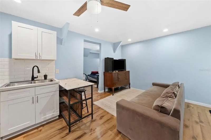 Welcome to this charming 1,171 Sq. Ft. 3-bedroom, 2-bath Craftsman bungalow with a 494 Sq. Ft. 1 BR / 1 BA ADU, ideally located in the sought-after North Kenwood neighborhood of St. Petersburg, FL. Situated on one of the highest elevations in Pinellas County, this property is in the Non-Evac and X flood zone—offering added peace of mind and long-term value. Inside, you’ll find original hardwood floors, a cozy breakfast nook, and a harmonious blend of historic character and thoughtful modern updates. The HVAC system was replaced in 2022, providing efficient, year-round comfort. A standout feature is the detached two-story Accessory Dwelling Unit (ADU), currently leased through February 2026—making it an excellent source of passive income. On the lower level (below) the ADU is a newly finished 494 Sq. Ft. office space, ideal for remote work or creative pursuits, that comes with its own bathroom and kitchen. Additional highlights include alley access with extra parking, an RV electrical hook-up, and a private outdoor area perfect for entertaining or relaxing. All of this is just minutes from Downtown St. Petersburg, award-winning Gulf beaches, and an array of shopping and dining destinations. Whether you're looking for a primary residence with added income or a savvy investment opportunity, this unique property delivers on all fronts. Schedule your private showing today—this one won’t last! The lower level of the ADU building is converted to an office space and is not accounted for as heated square feet in the tax records. Buyer to verify all measurements and ADU & converted office information and specs.