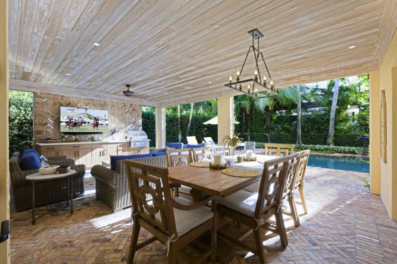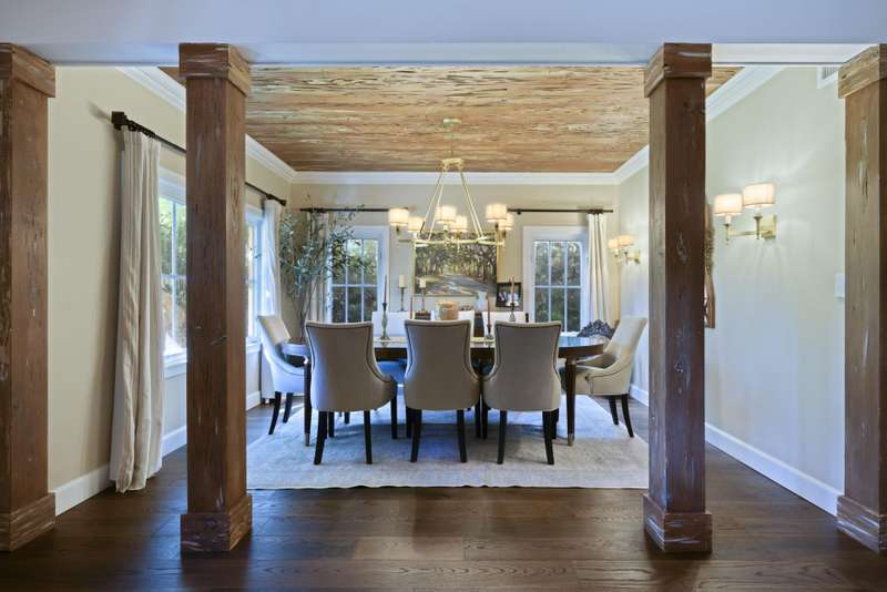 Set on one of the most prestigious streets South of Southern (SoSo), 245 Murray Road is a Spanish Mediterranean estate that has been completely reimagined by the renowned architectural firm Spina ORourke. Behind its custom pecky cypress front door, the residence unveils a grand living room with soaring 13-foot vaulted ceilings, dramatic pecky cypress beams, a marble fireplace, tongue-and-groove detailing, and wrought-iron accents that carry through the home. The formal dining room is equally captivating with its pecky cypress ceiling, chandelier, and oak hardwood flooring. Designed for entertaining, the main level offers a theater room, billiards lounge with a custom bar, and a warm family room that flows seamlessly into the chefs kitchen,