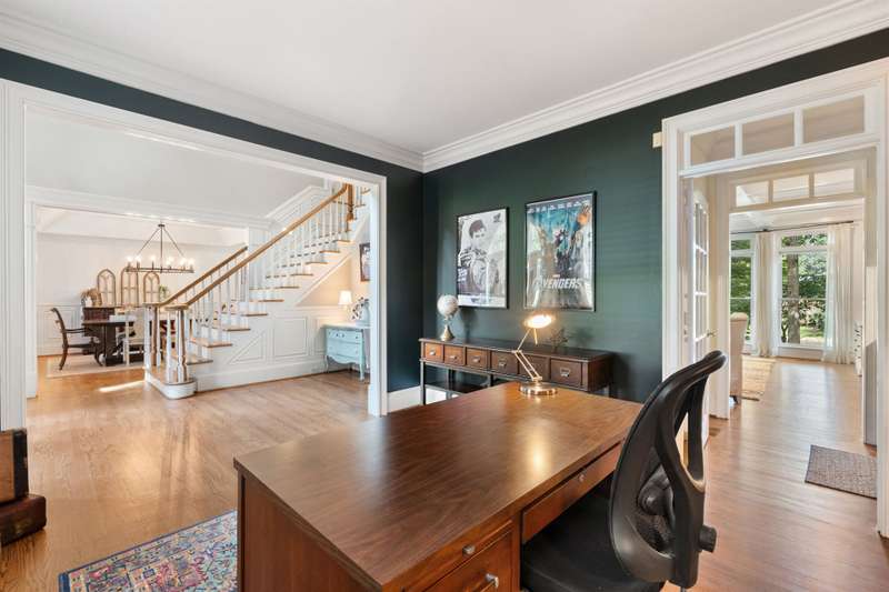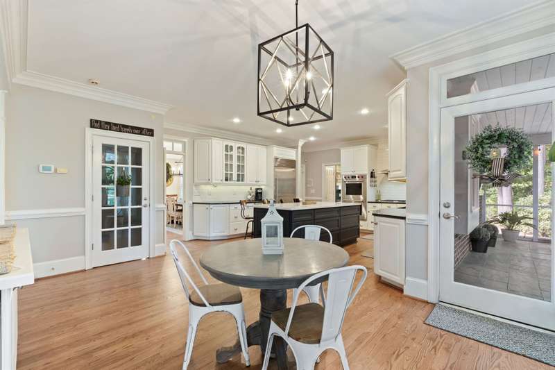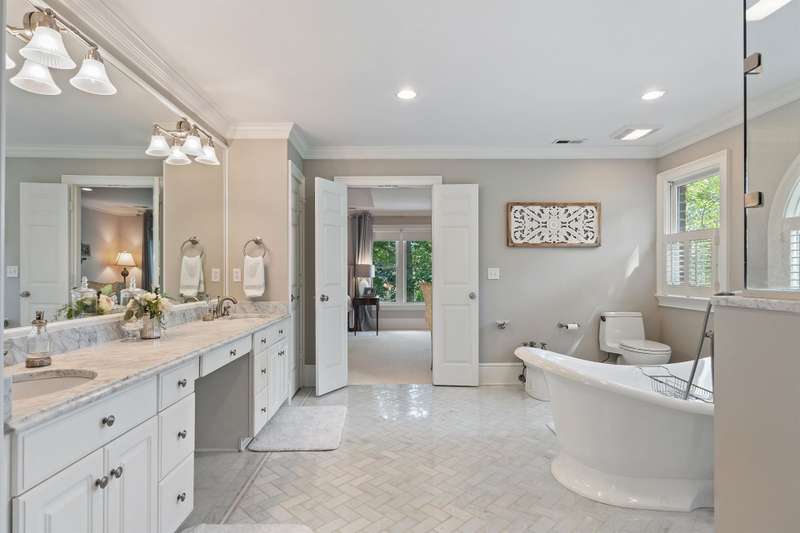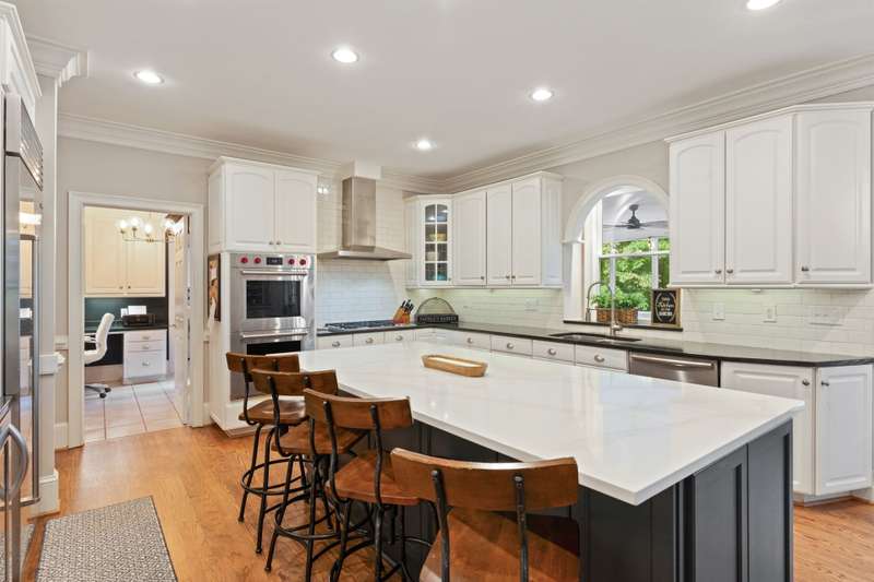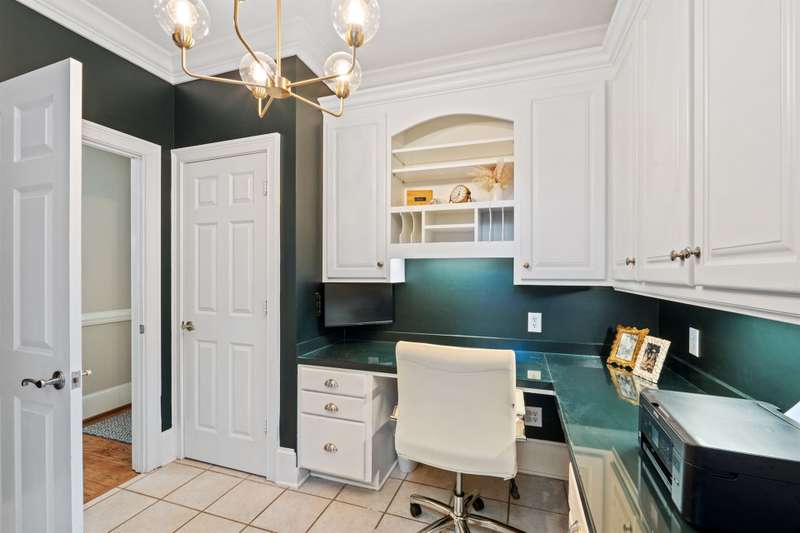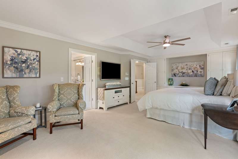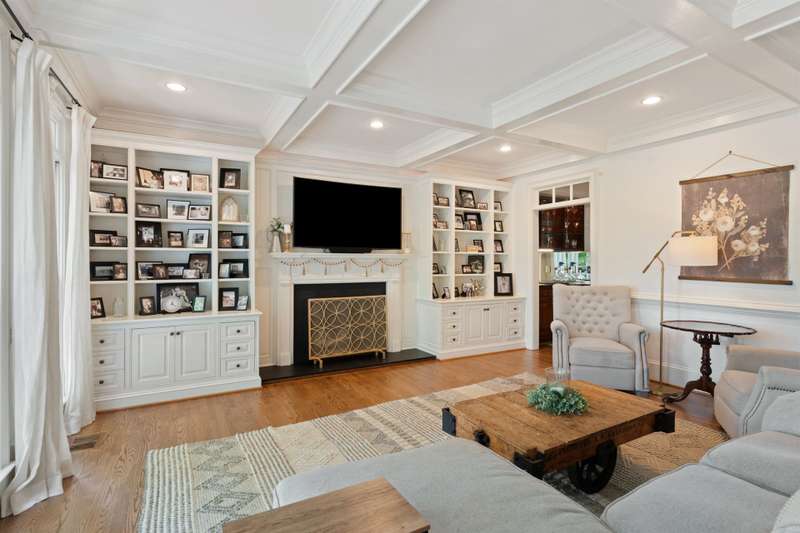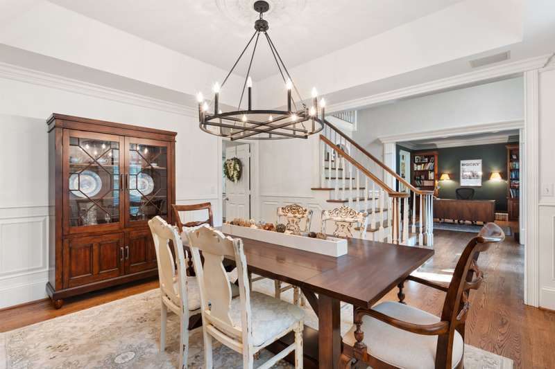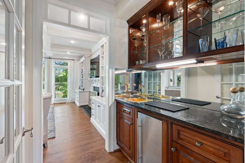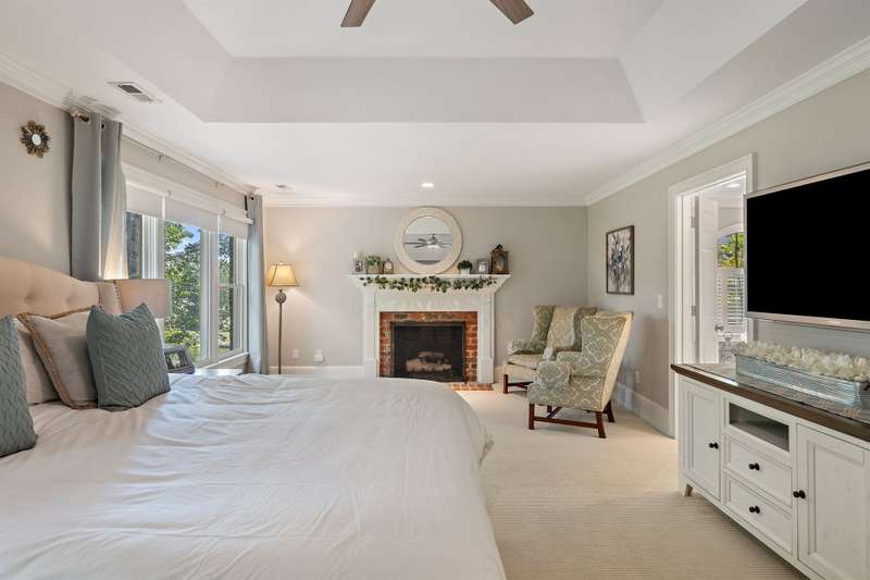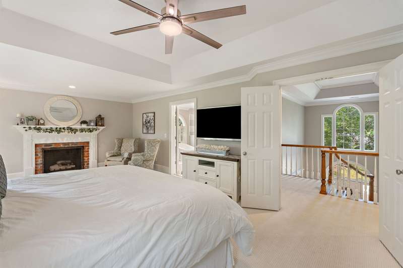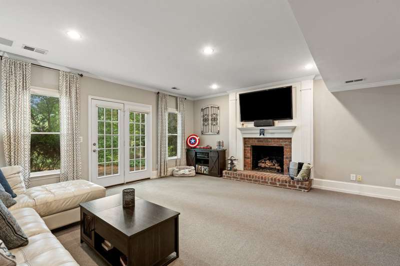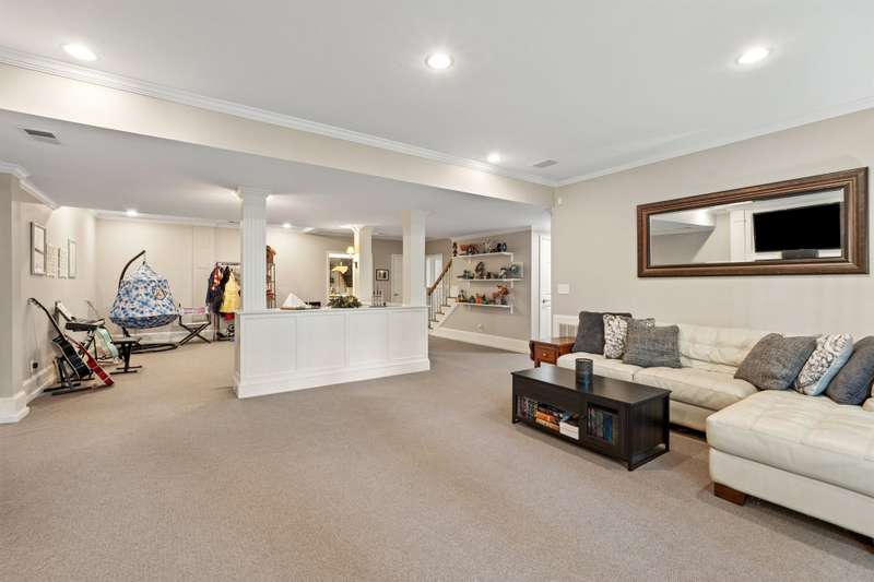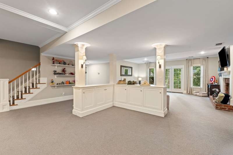 OFFER DEADLINE-6 PM, Sunday, September 7th! Gorgeous brick traditional home in Greenbrier Farm with stunning updates and serene waterfront views on a cul-de-sac lot. This 5BR/4.5BA home features exquisite millwork, wainscoting, and custom built-ins throughout. The expansive living room showcases floor-to-ceiling windows overlooking the water, coffered ceiling, and a stylish bar for entertaining. The chef's kitchen offers a large island, Sub-Zero fridge, Wolf double ovens, gas cooktop, and wine fridge. Main level also includes a warm den, elegant dining room, office, and screened-in porch for outdoor living. Upstairs, the primary suite is a retreat with sitting area, fireplace, and spa-like bath, plus 3 oversized bedrooms, 2 full baths, and a bonus room. Finished basement features a bedroom, bath, recreation space, flexible room, and garage with extra bay, storage, and workroom. Waterfront living in Greenbrier Farm with pool, clubhouse, trails, tennis, playground, and community events!