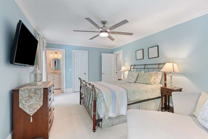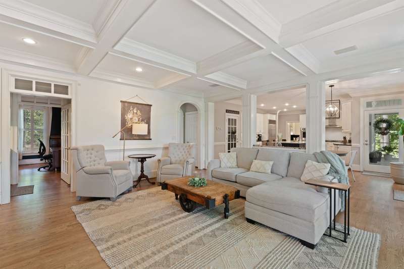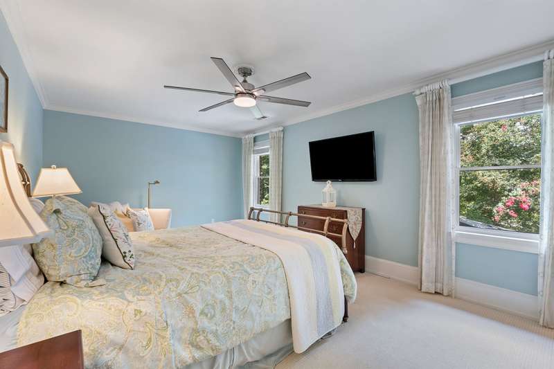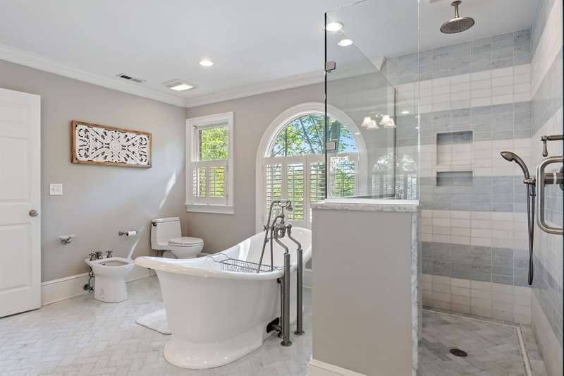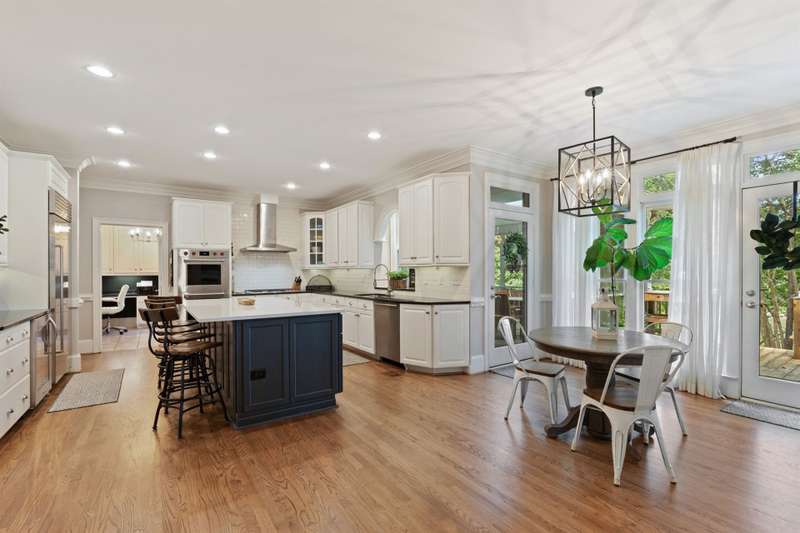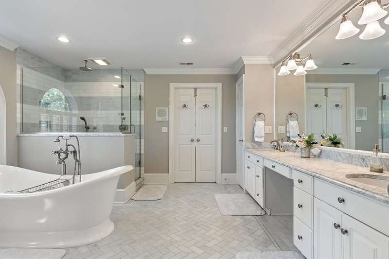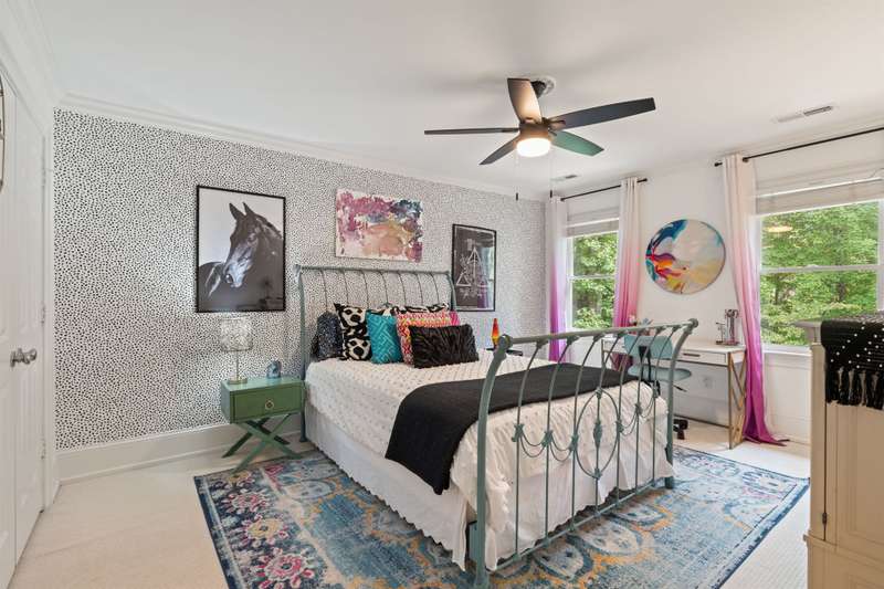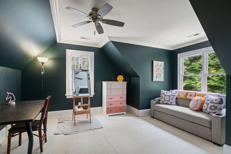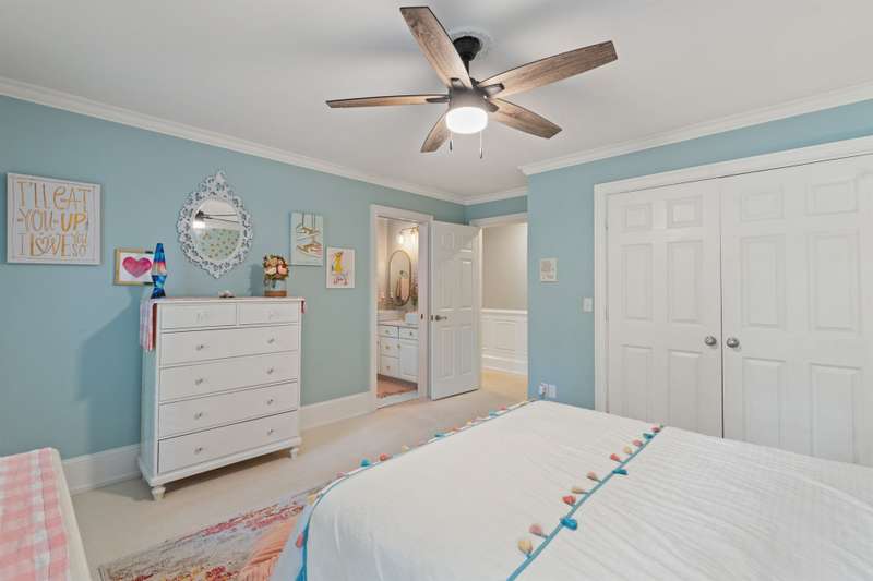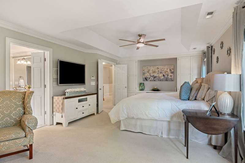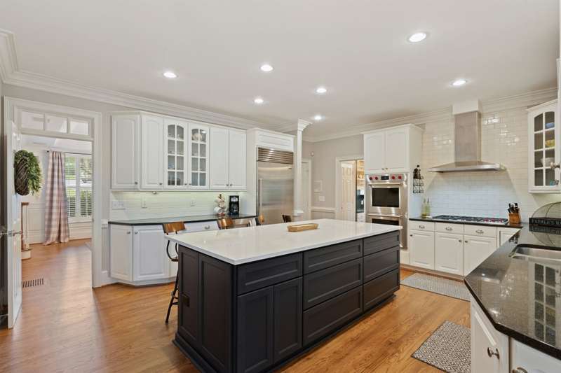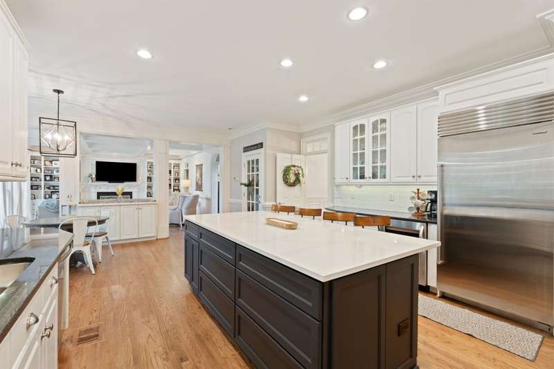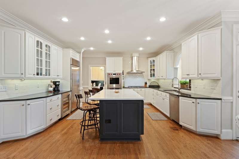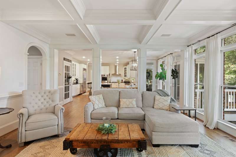 OFFER DEADLINE-6 PM, Sunday, September 7th! Gorgeous brick traditional home in Greenbrier Farm with stunning updates and serene waterfront views on a cul-de-sac lot. This 5BR/4.5BA home features exquisite millwork, wainscoting, and custom built-ins throughout. The expansive living room showcases floor-to-ceiling windows overlooking the water, coffered ceiling, and a stylish bar for entertaining. The chef's kitchen offers a large island, Sub-Zero fridge, Wolf double ovens, gas cooktop, and wine fridge. Main level also includes a warm den, elegant dining room, office, and screened-in porch for outdoor living. Upstairs, the primary suite is a retreat with sitting area, fireplace, and spa-like bath, plus 3 oversized bedrooms, 2 full baths, and a bonus room. Finished basement features a bedroom, bath, recreation space, flexible room, and garage with extra bay, storage, and workroom. Waterfront living in Greenbrier Farm with pool, clubhouse, trails, tennis, playground, and community events!