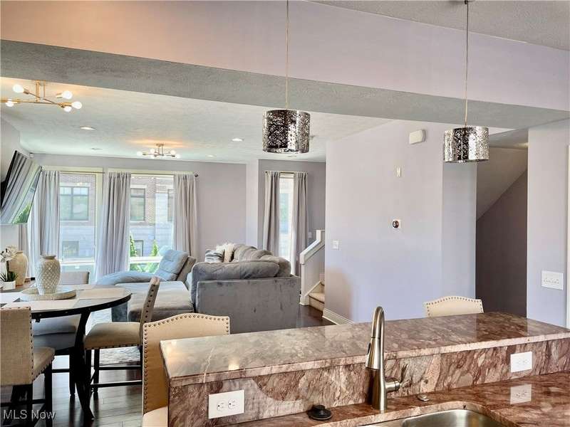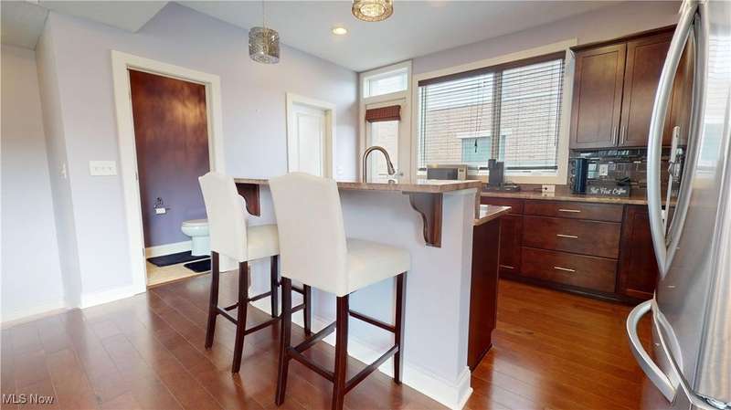 Welcome to 1412 in the maintenance free Bluestone Community! This gorgeous 3-bedroom, 3.5-bathroom townhome is an amazing end unit featuring contemporary style and move in ready with an attached garage. There is a bedroom that can also be used as an office and a full bathroom with a shower on the first level. The second level provides an open living space featuring a beautiful gourmet kitchen with a bar seating area, granite counters and stainless appliances that lead to a private patio for your enjoyment. There is an open living and dining room with dramatic floor to ceiling windows and a half bath. The third level offers a master bedroom with a custom closet, a full bath equipped with a soaking tub, walk-in shower and double vanities. A conveniently located laundry room and additional bedroom with its own en suite bathroom complete the third level. Bluestone offers ample guest parking and is located conveniently to shopping, Cleveland Clinic, Case, and University Circle. This stunning townhome is a must see!