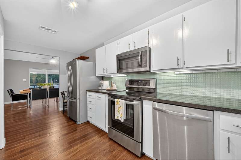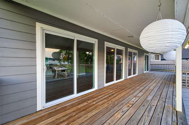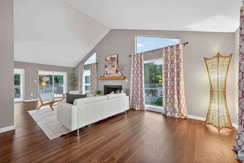 Discover Cape Royale’s Best Water View! This beautifully renovated 5-Beds, 3-Baths, 2,400 sqft retreat offers stunning views of Lake Livingston from nearly every room, thanks to its reverse floor plan, with only a greenbelt between you and the water. Inside, a modern coastal charm with wood floors, high ceilings, and tons of natural light. The kitchen offers granite counters, glass tile backsplash, and SS appliances. The primary suite has direct access to the lanai, with an ensuite with double sink, large shower and walk-in closet. The 2-story lanai is perfect for watching sunsets or simply relaxing in a resort-like atmosphere. After a day at the lake, rinse off in the steel walk-in/walk-out shower. Updates include a metal roof, new A/C, windows, doors, and more—truly move-in ready. Located in a sought-after gated community, with access to the lake’s deepest marina, premium amenities and STR allowed. Experience waterfront living without the maintenance or expense of a waterfront lot!