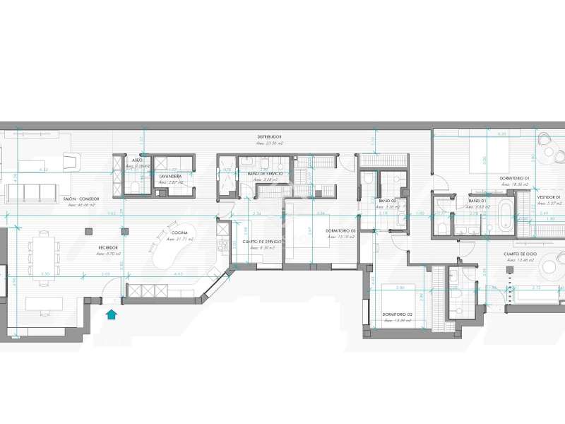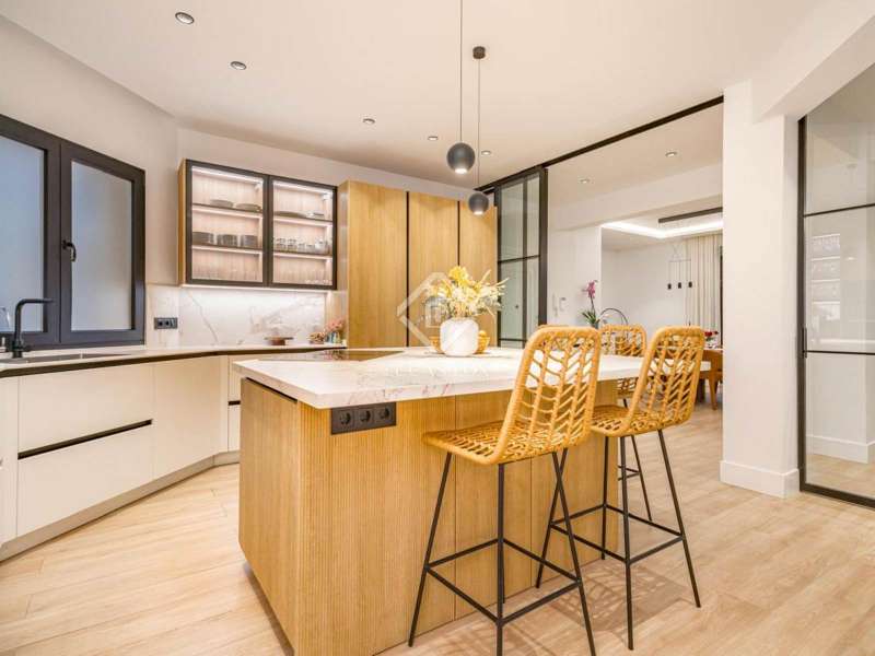 Lucas Fox presents this spectacular brand new exterior apartment, located in an elegant classic building from 1946 with a lift and concierge service. The property stands out for its luminosity, thanks to its two terraces: one with views of the street and the other facing a quiet courtyard. Upon entering, an elegant entrance hall acts as a hall for the property. To the left, a spacious and open-plan living room opens up with a seating and dining room area, which connects to the main south-facing terrace. To the right, we find a sophisticated kitchen fully equipped with high-end appliances , which can be made independent by means of an innovative system of wooden bars, providing a unique touch of design. In this same area, there is a guest toilet and a practical laundry room room. The night area houses five spacious bedrooms, each with its own en-suite bathroom , ensuring privacy and comfort. This exclusive property has been renovated with the highest quality materials and meticulous attention to detail: adaptable ambient lighting, high ceilings and an efficient aerothermics heating and cooling system. It also has a storage room on the same building. Located in a quiet street in the prestigious Salamanca district, in the Castellana area, the property is surrounded by exclusive shops, restaurants and amenities, just 300 meters from Príncipe de Vergara Street. A unique opportunity to enjoy luxury, comfort and design in one of the best areas of Madrid.