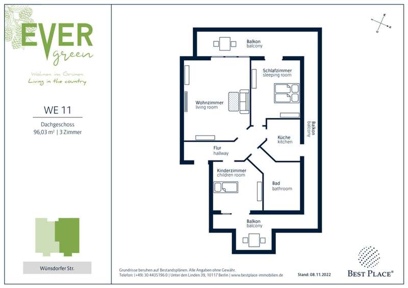 "Out of the city, off into the countryside" - this dream of many is fulfilled with a flat at Evergreen in Lichtenrade. Eleven apartments are for sale here, spread over four floors. All flats have two to three rooms and living areas between approx. 59 m² and 83 m². The balconies and loggias also face the quiet garden side, guaranteeing every resident in Evergreen a beautiful, sunny open view.